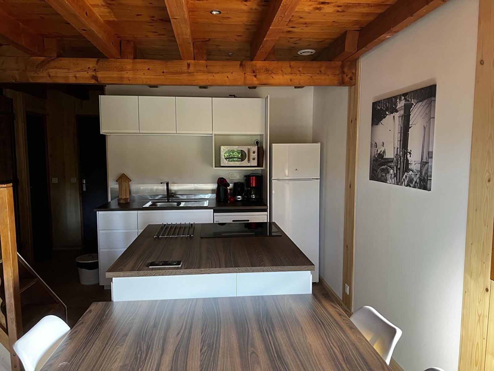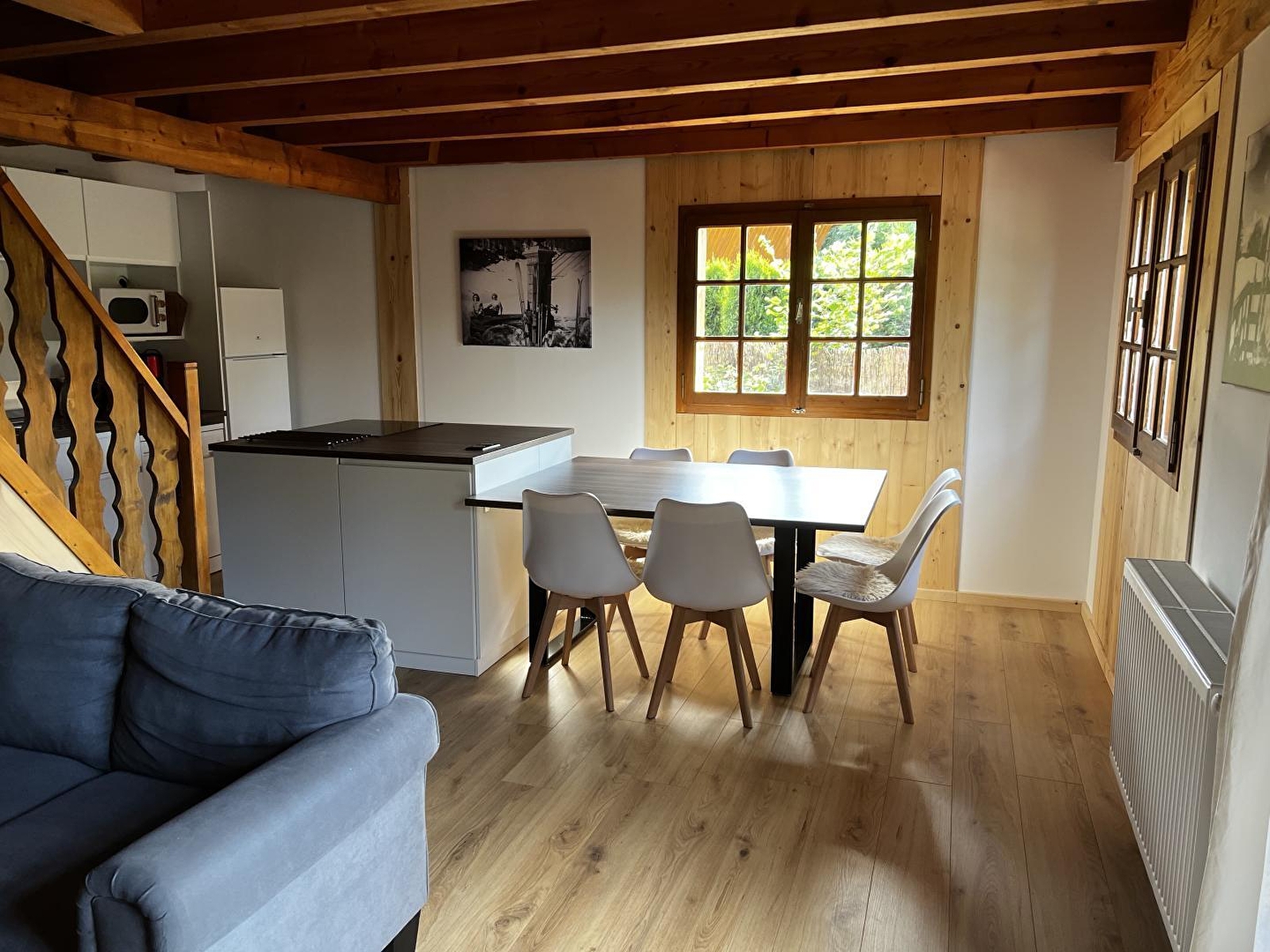 A 500 m du village (10 min à pied), à proximité de la forêt du Risoux et des pistes de skis de fond, logement aménagé au rez-de-chaussée d'un chalet, mitoyen de celui des propriétaires. Coin-cuisine américaine, séjour-salon exposé plein sud, terrasse, salon de jardin, chaises longues, ch1 : 1 lit 2 pl, salle de douche, WC indépendant. A l'étage : ch2 : 2 lits 1 pl + 1 lit bébé, ch3 : 1 lits 2 pl. Terrain commun non clos, chauffage central. Toutes charges comprises. Hors saison, tarif weekend 300€