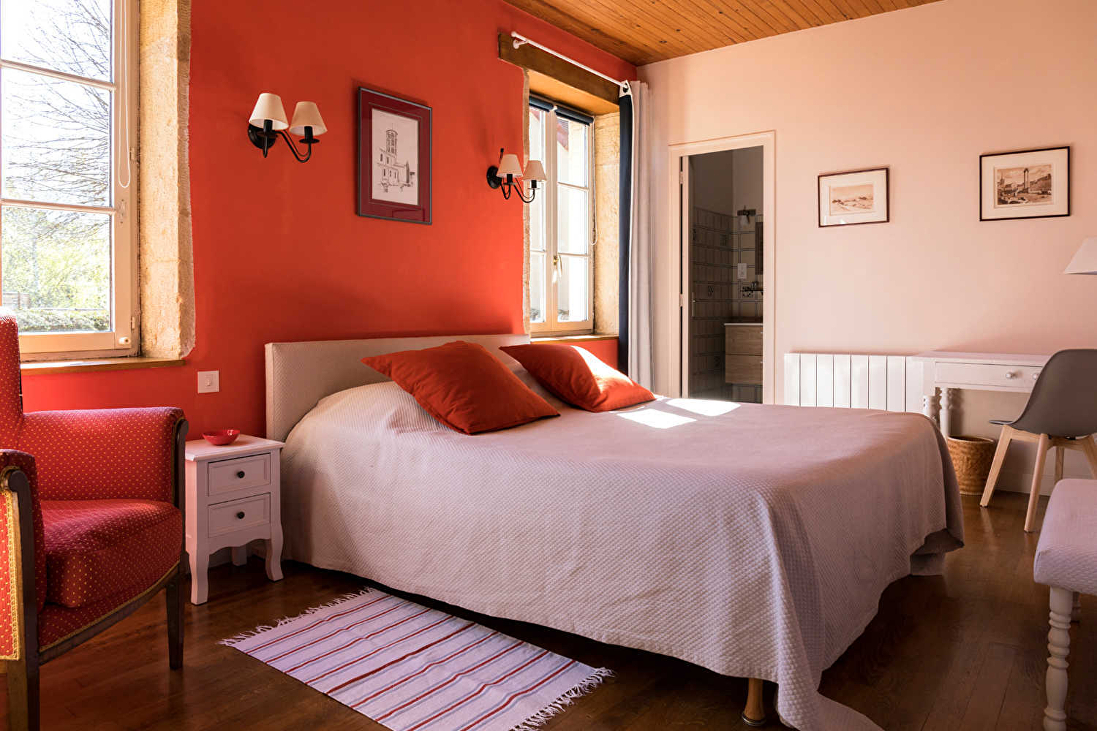 Geneviève & Christian vous ouvrent les portes d'une élégante bâtisse bourguignonne de caractère chargée d'histoire datant de 1920 (ancienne "école de filles"), blottie au calme en bordure d'une petite ruelle bordée d'historiques murs en pierres sèches, au cœur même du pittoresque village d'Anzy-le-Duc, pétri de charme & parfaitement sauvegardé (riche de belles demeures traditionnelles réhabilitées), réputé pour sa somptueuse église romane classée du XIe (l'un des plus merveilleuses de Bourgogne, trônant à deux pas du gîte) & son magnifique Prieuré du XIIe. Totale tranquillité, en pleine douce campagne brionnaise préservée, lové au creux du bucolique bocage vallonné non loin d'une vaste forêt domaniale comme des rives de la Loire, site naturel protégé en "Zone Natura 2000" pour la qualité de ses riches écosystèmes (axe de migration, reproduction & nidification pour de nombreuses espèces dont certaines très rares / poissons, amphibiens, mammifères, oiseaux…). Spacieux gîte de très bon confort. Beaux volumes. Chaleureux cachet campagnard "bourgeois", cossu & raffiné, conjuguant esprit "vintage" & touches contemporaines. Agréable ambiance "pop" colorée, dialoguant avec l'âme dépaysante des lieux (linteaux en pierres & parquets d'origine). Beaucoup de charme. Cosy & douillet. Vaste "intimiste" cour close fleurie dotée d'un majestueux tilleul (appréciable ombrage naturel côté terrasse en été). Grange abritant une table de ping-pong & un baby-foot en accès direct.