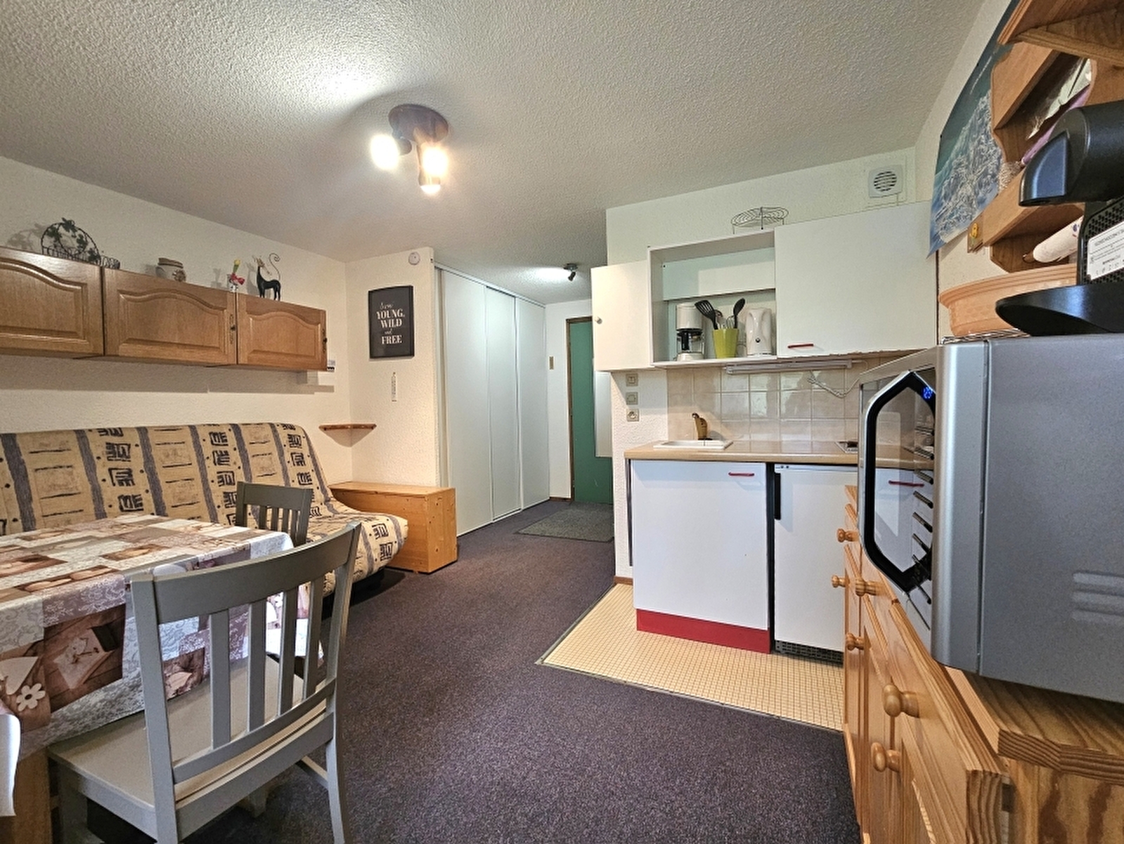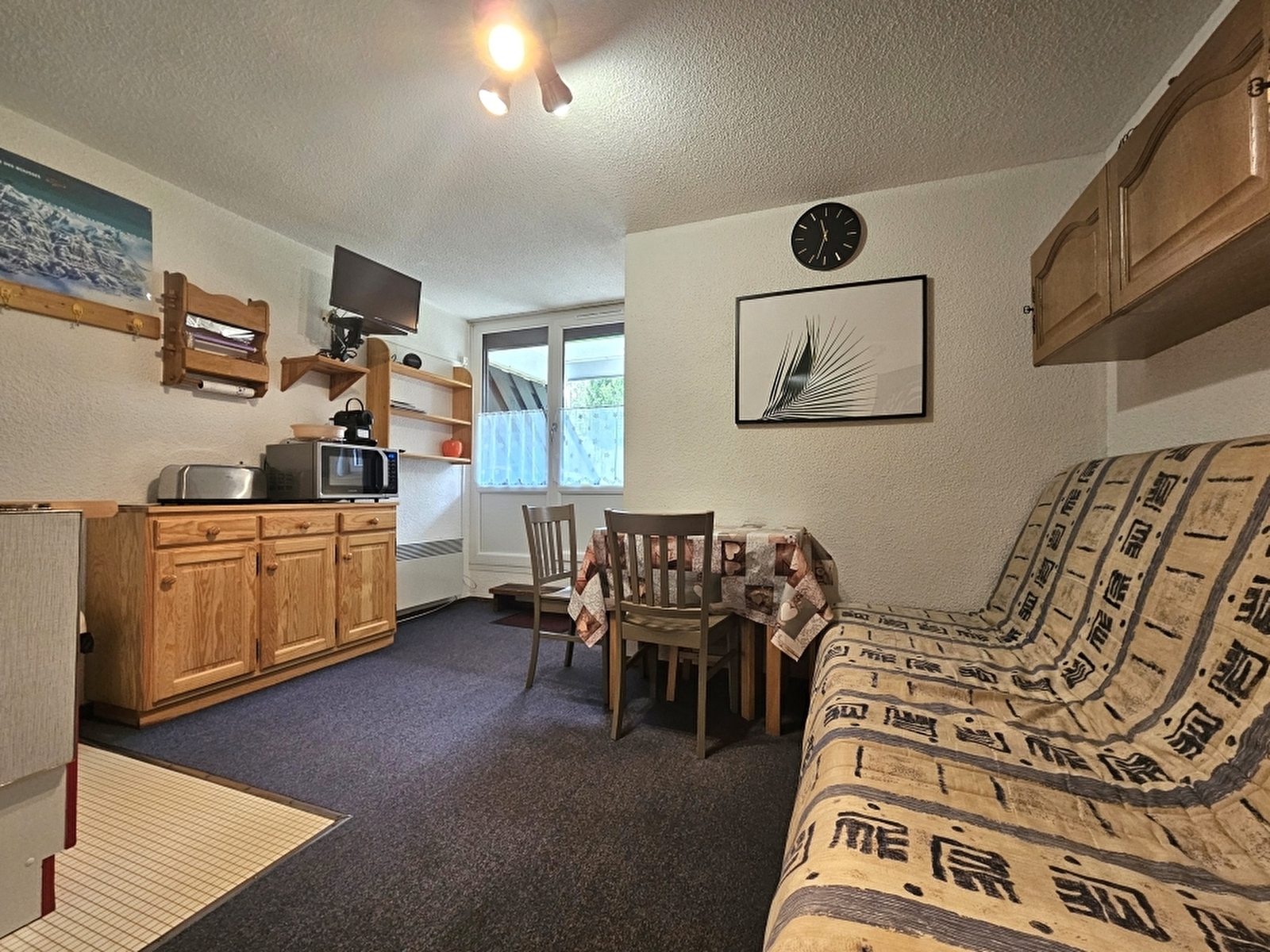 Situé dans la résidence "Les Adraits", Studio de 23m² au rez-de-chaussée est composé d’une entrée avec grands placards de rangements ainsi que d’une pièce principale avec coin cuisine/repas et canapé convertible de 140cm. Un coin nuit fermé par un rideau avec lit de 140cm. Salle d’eau et WC indépendant. Un accès extérieur sur terrasse non clôturée complète le tout. Parking extérieur privé à la résidence et parking souterrain associé au logement.