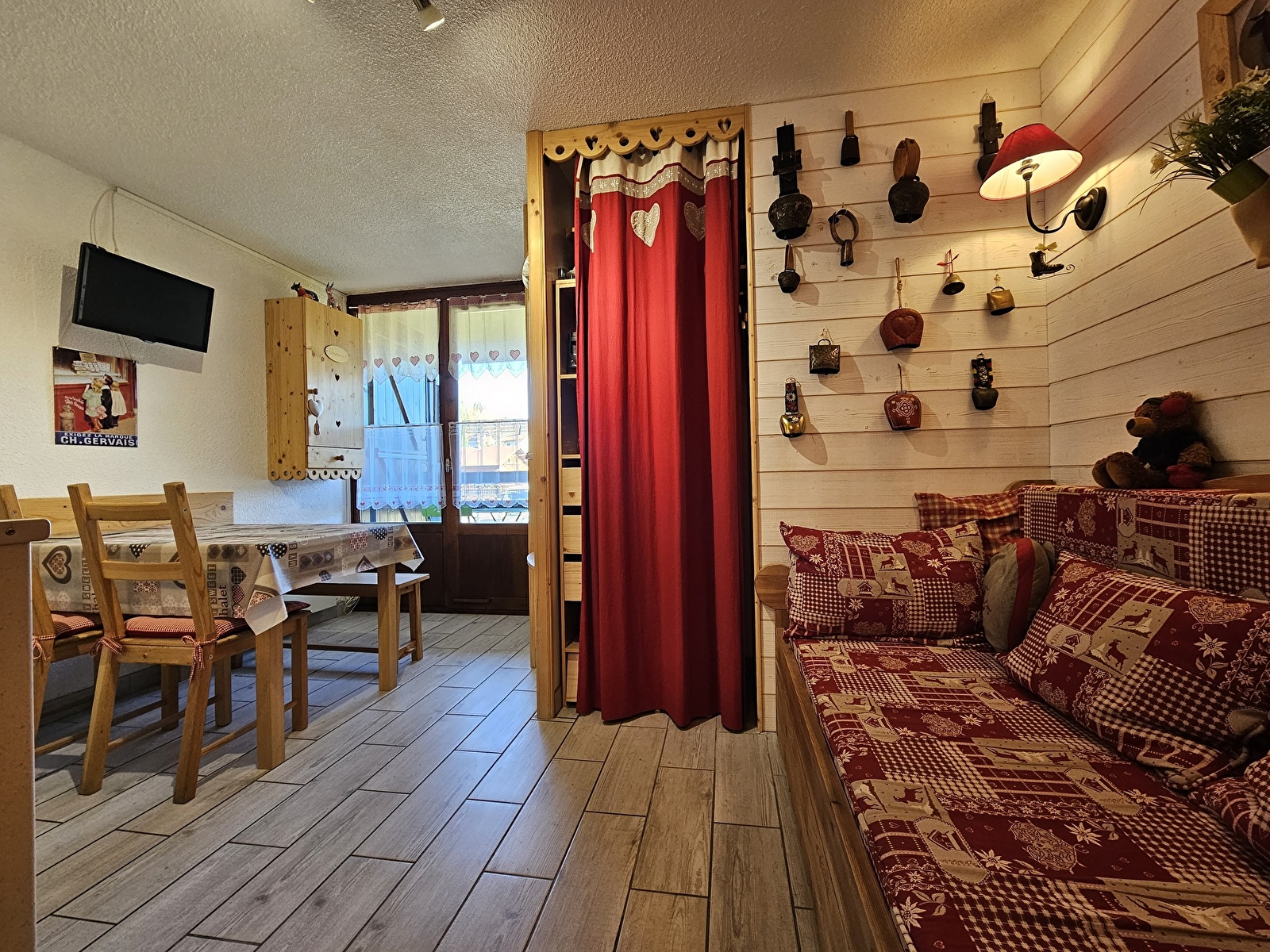Situé dans la résidence "Les Adraits", le studio de 24m² au 1er étage est composé d’une entrée avec lits superposés de 80cm ainsi que d’une pièce principale avec coin cuisine/repas et canapé. Un coin nuit fermé par une porte avec lit de 140cm. Salle de bain et WC indépendant.