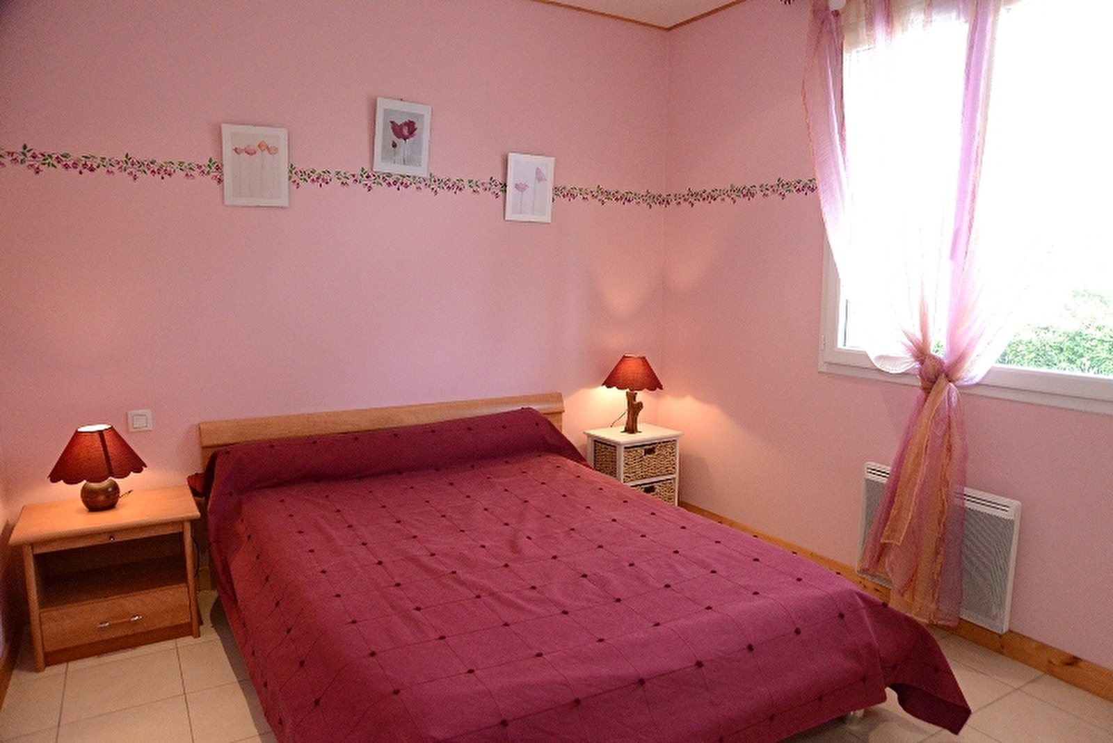 Au coeur de la nature, maison indépendante de plain pied. Grand séjour avec coin cuisine intégré, congélateur, sèche-linge, salle d'eau, ch1: 1 lit 2 pl, à l'étage: mezzanine: grand salon avec 2 canapés, accès au balcon, salle d'eau, ch2: 1 lit 2 pl, ch3: 2 lits 1 pl. Chauffage électrique, buanderie, terrain de pétanque, terrain non clos. Lac de Vouglans à 10 mn, magnifique vue panoramique, calme. Piscine de 5 x 12 m au sol avec barrière de sécurité (ouverte de 11h à 20h), commune à 3 gîtes et chauffée par aérothermie à partir de mi-mai début juin en fonction de la météo. Animaux non acceptés.