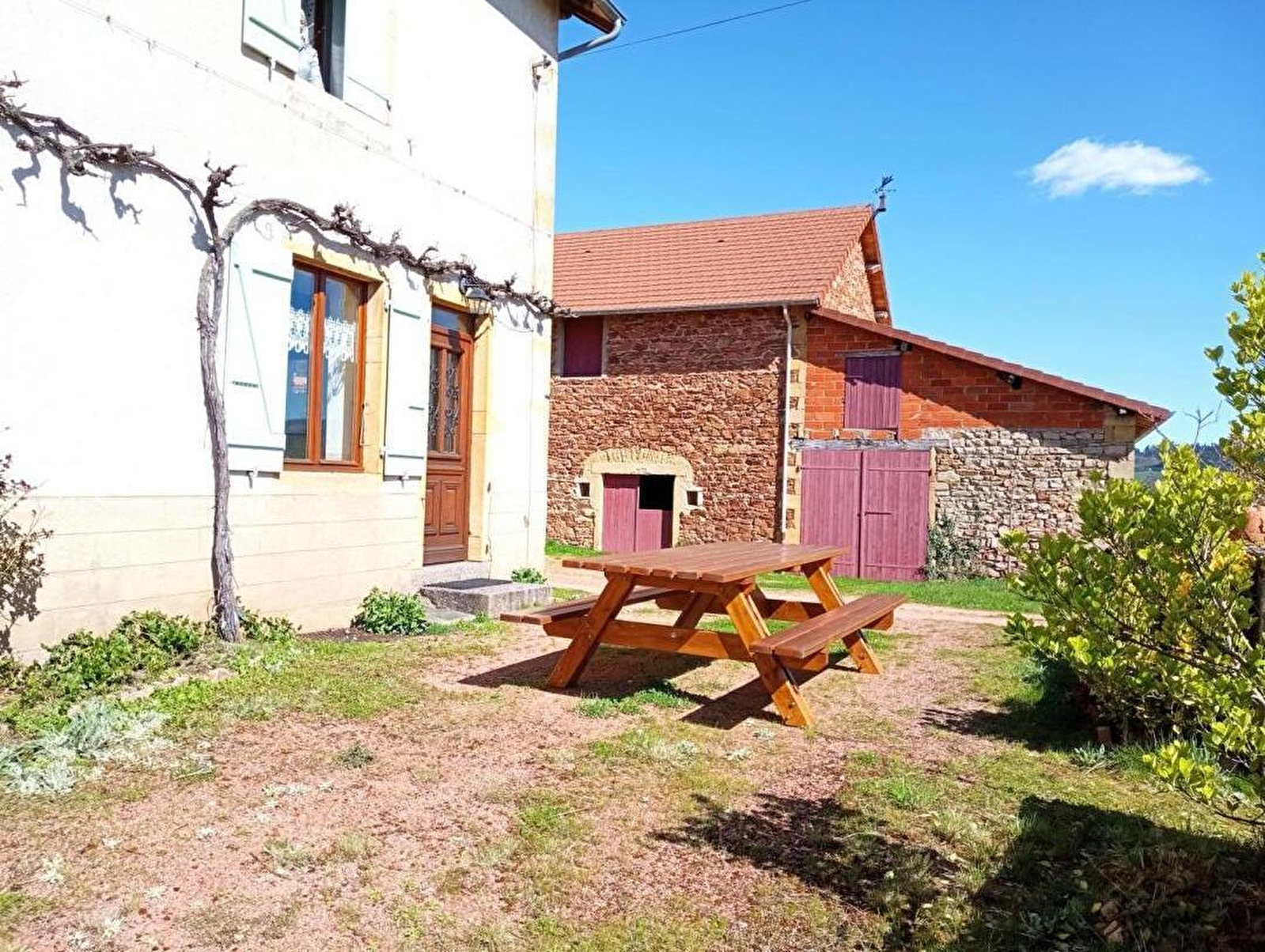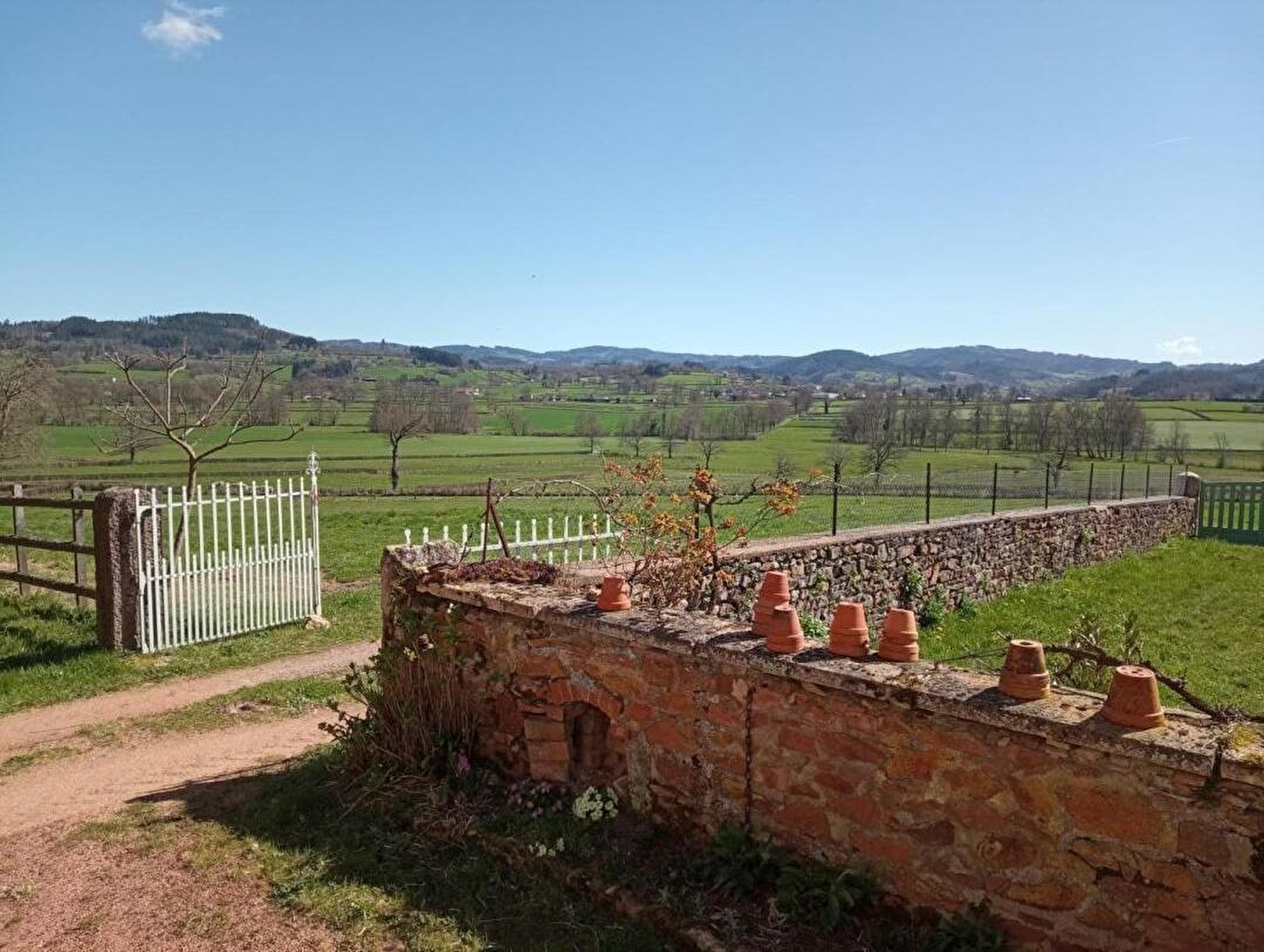 Denise & Jean-Pierre vous accueillent dans une authentique ferme traditionnelle du début XXème intégralement réhabilitée - agrémentée d'anciennes dépendances agricoles - perchée à flanc de colline, en "balcon" & "belvédère panoramique", au bout d'une impasse sur un coteau sud exposé dominant un verdoyant vallon. Calme & totale tranquillité en pleine campagne brionnaise, lové sur les premiers contreforts boisés des Monts du Beaujolais au sein d'un petit hameau rural "dispersé", au cœur du magnifique bocage local parsemé de rivières & d'étangs (accueillant en saison les célèbres vaches charolaises), à deux pas de belles forêts sauvages & du bourg commerçant de Chauffailles (nombreuses commodités sur place dont supermarchés & riche niveau d'équipements sportifs & de loisirs). Magnifique écrin préservé de montagne douce, mixant agriculture & pleine nature non loin des premiers vignobles. Cadre paysagé de toute beauté, littéral havre de paix & repos, 100% reposant. Spacieux gîte de bon confort. Chaleureux cachet campagnard dialoguant avec les traces du bâti d'origine (escalier en bois avec son garde-corps métallique, nombreux placards muraux moulurés, poutre, manteau de cheminée en pierres…). Ambiance douce & dépaysante d'une ancienne demeure rurale. Large terrasse exposée ouverte sur un agréable terrain clos de 600m², entretenu dans un esprit "écologique", comprenant un espace jardin & une grande cour. Superbe panorama & vue dégagée sur la campagne environnante.