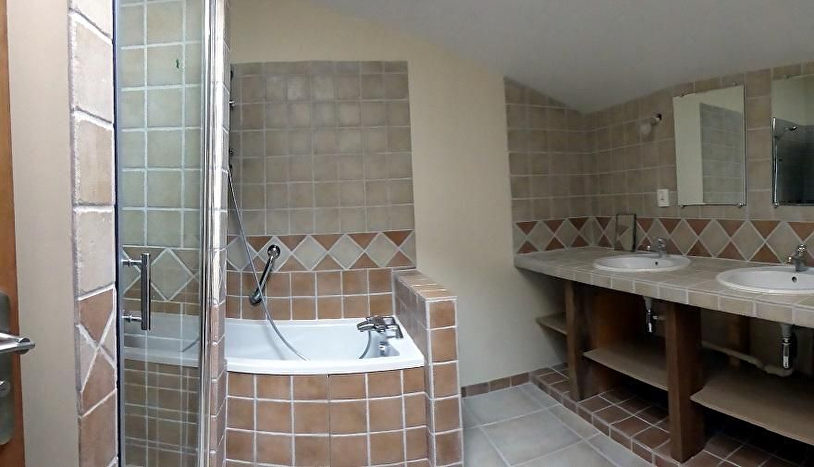 A l'étage, 1 chambre 3 lits 90, 2 chambres 1 lit 140, 1 chambre 1 lit gigogne (2 lits 90), 1 salle d'eau avec WC. Table de ping-pong. 6 espaces de stationnement - Possibilité stockage vélos. 1 animal admis gratuitement.