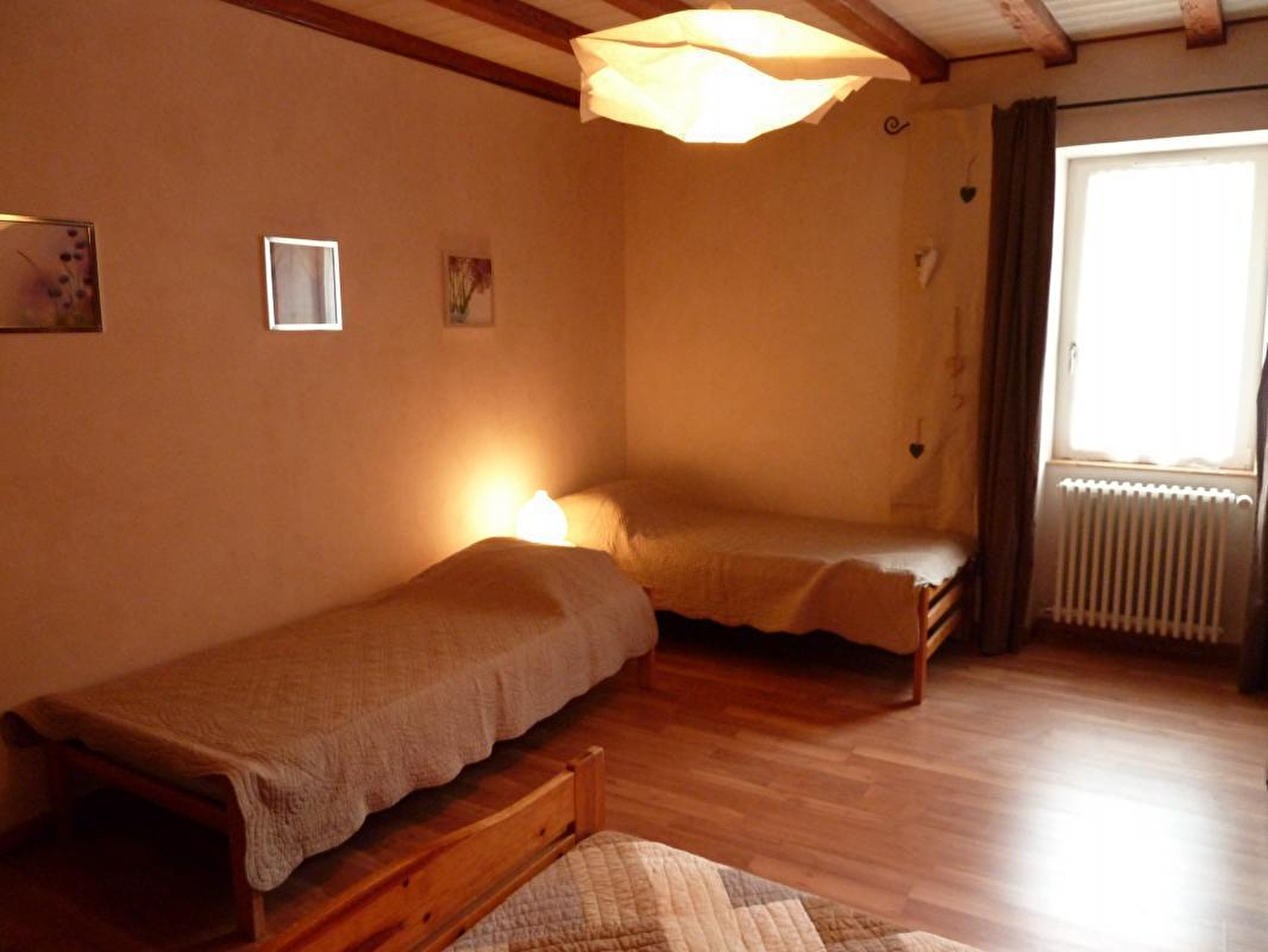 Composition : Maison individuelle (totalement indépendante) jouxtant l'habitation des propriétaires (comprenant également 5 chambres d'hôtes). Wifi (fibre). Chauffage central au gaz. Gîte de plain-pied (rdc) : séjour-cuisine-salon, 1 chambre (1 lit 2 p. 140x190cm + 2 lits 90x190cm), salle d'eau (douche), WC indépendants. Jardin privatif de 150m² (toboggan, bac à sable). Parking privé. Commerces 4 km. Toutes commodités 9 km. Gare 8.5 km. Arrivée possible uniquement entre 17h et 21h (d'octobre à mars) et 21h30 (d'avril à septembre).