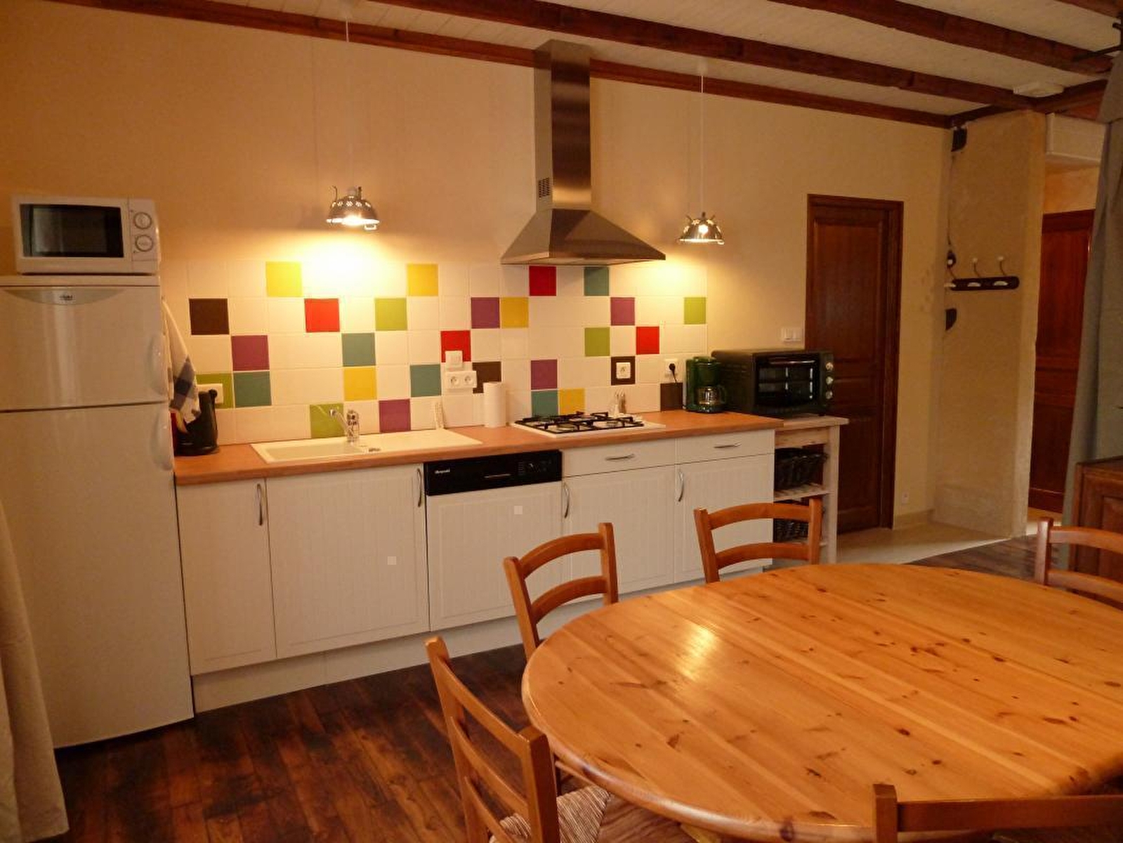Composition : Maison individuelle (totalement indépendante) jouxtant l'habitation des propriétaires (comprenant également 5 chambres d'hôtes). Wifi (fibre). Chauffage central gaz. Gîte de plain-pied (rdc) : séjour-cuisine-salon, 1 chambre (lit 2 p. 140x190cm + 2 lits 1 p. 90x190cm), salle d'eau (douche), WC indépendant. Jardin de 150m² (toboggan & bac à sable) + parking privés. Supermarchés 4 km. Arrivée possible entre 16h & 21h (d'octobre à mars) et 16h & 21h30 (d'avril à septembre).