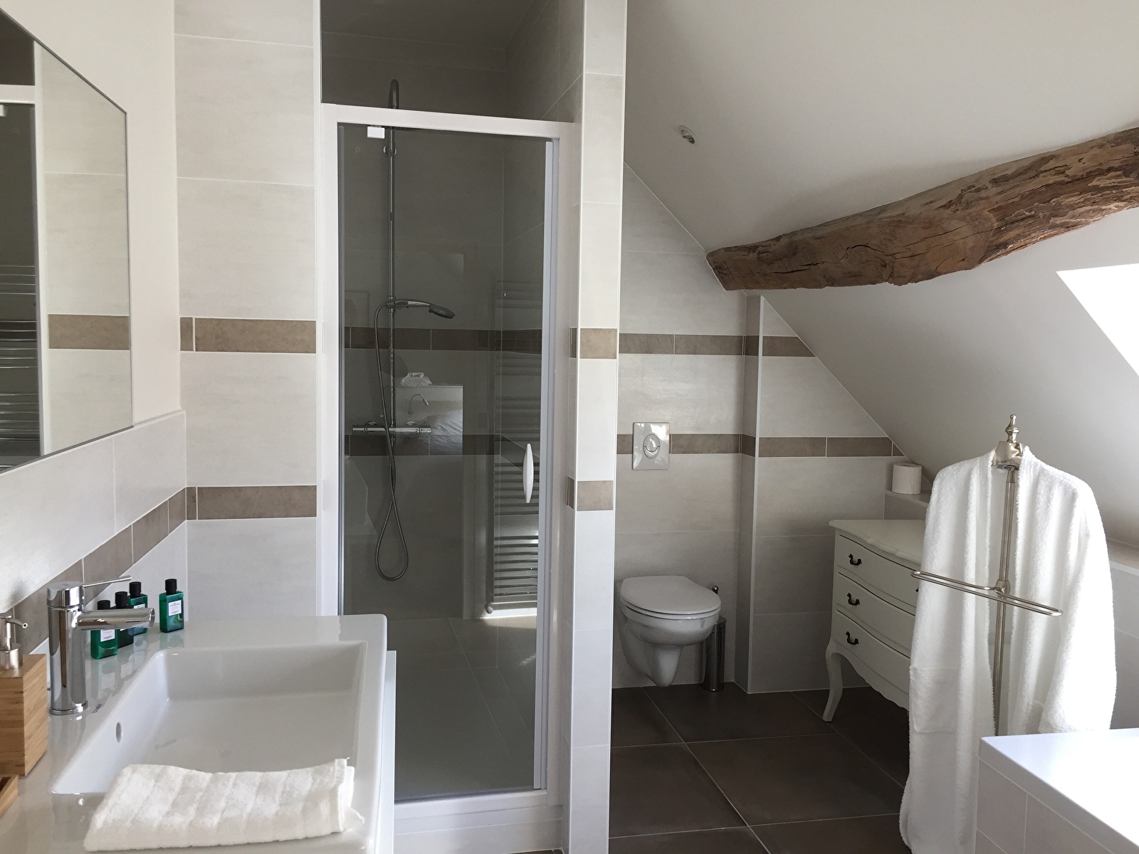 - 1 grande salle de bain (douche +baignoire) par chambre