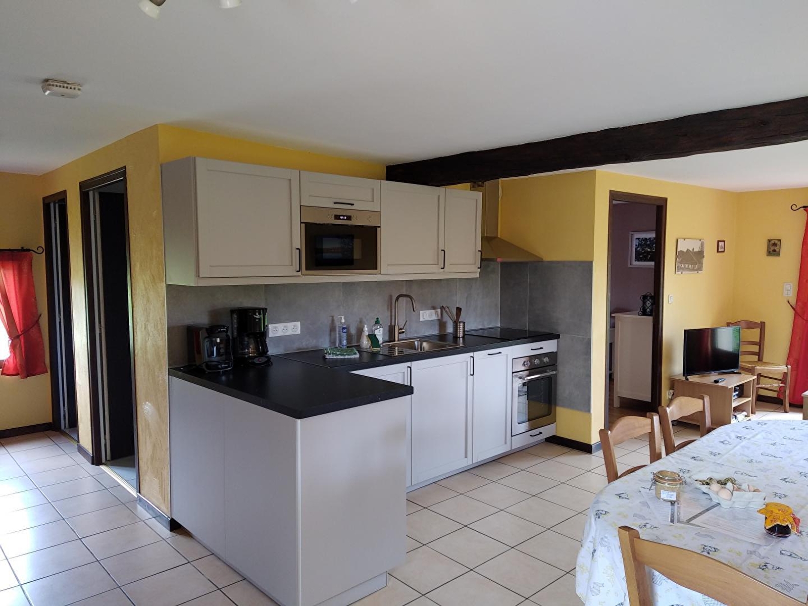 Maison indépendante située dans l'enceinte d'une petite ferme (ânes, canards, poules). Séjour-salon, canapé convertible, coin-cuisine, micro-ondes, congélateur, lecteur DVD/CD, salle d'eau, WC indépendant, ch1: 1 lit 2 pl, à l'étage: ch2: 4 lits 1 pl, dont 2 gigognes, équipement pour bébé. Chauffage électrique et poêle à bois, cour, salon de jardin, barbecue, terrain privatif clos. Piscine et terrasse, commune avec les propriétaires et un autre gîte (piscine du propriétaire mise à disposition), terrain de pétanque, pingpong. Pour votre plus grand confort ce gîte est proposé en tout inclus : lits faits à l'arrivée, linge de toilette et linge de maison fournis, ménage inclus. (Possibilité d'accueillir 2 pers supplémentaires dans le canapé:10€/jour/pers). Borne de recharge électrique : forfait entre 5 et 10 euros par jour.