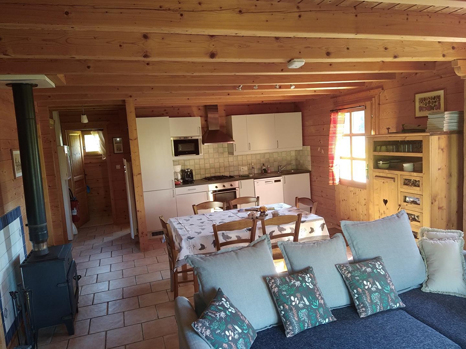 Chalet indépendant situé dans l'enceinte d'une petite ferme ( poules, ânes, canards). Séjour- salon avec canapé convertible, coin-cuisine, micro-ondes, congélateur, lave vaisselle, lecteur DVD/CD, salle d'eau, WC indépendant, ch1: 1 lit 2 pl, ch2: 2 lits 1 pl, ch3 : 2 lits 1 pl, équipement pour bébé, chauffage électrique, poêle à bois. Cour, terrasse, jardin, parc attenant clos, salon de jardin, barbecue, piscine avec terrasse, commune avec les propriétaires et un autre gîte (Piscine du propriétaire mise à disposition) , terrain de pétanque, pingpong. Pour votre plus grand confort ce gîte est proposé en tout inclus : lits faits à l'arrivée, linge de toilette et linge de maison fournis, ménage inclus. Borne de recharge électrique : forfait entre 5 et 10 euros par jour.