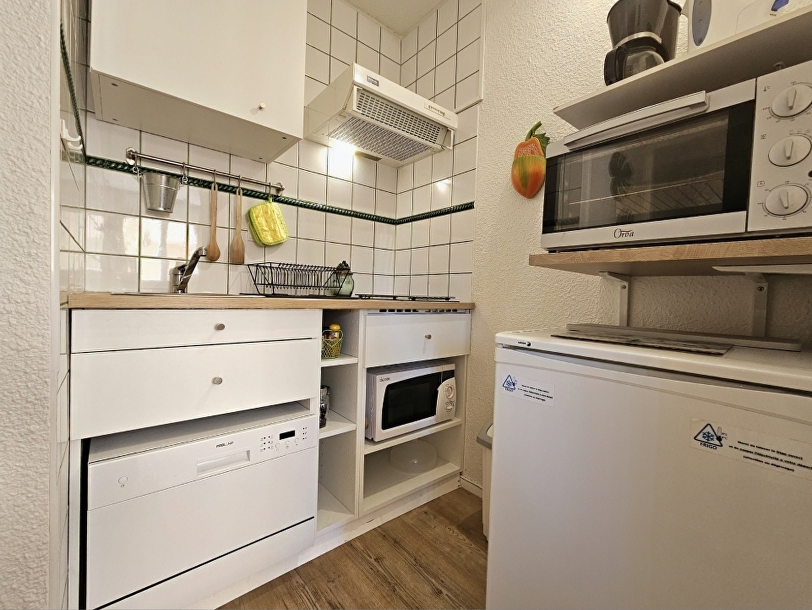 Situé dans la résidence "Les Campènes", l’appartement de 40m² au 2ème étage est composé d'une pièce principale avec coin cuisine/repas et canapé clic-clac, Coin nuit avec lit de 140cm fermé par une porte coulissante. Salle de bain et WC indépendants. Un accès extérieur sur petit balcon complète le tout. Emplacement de parking couvert sous la résidence.