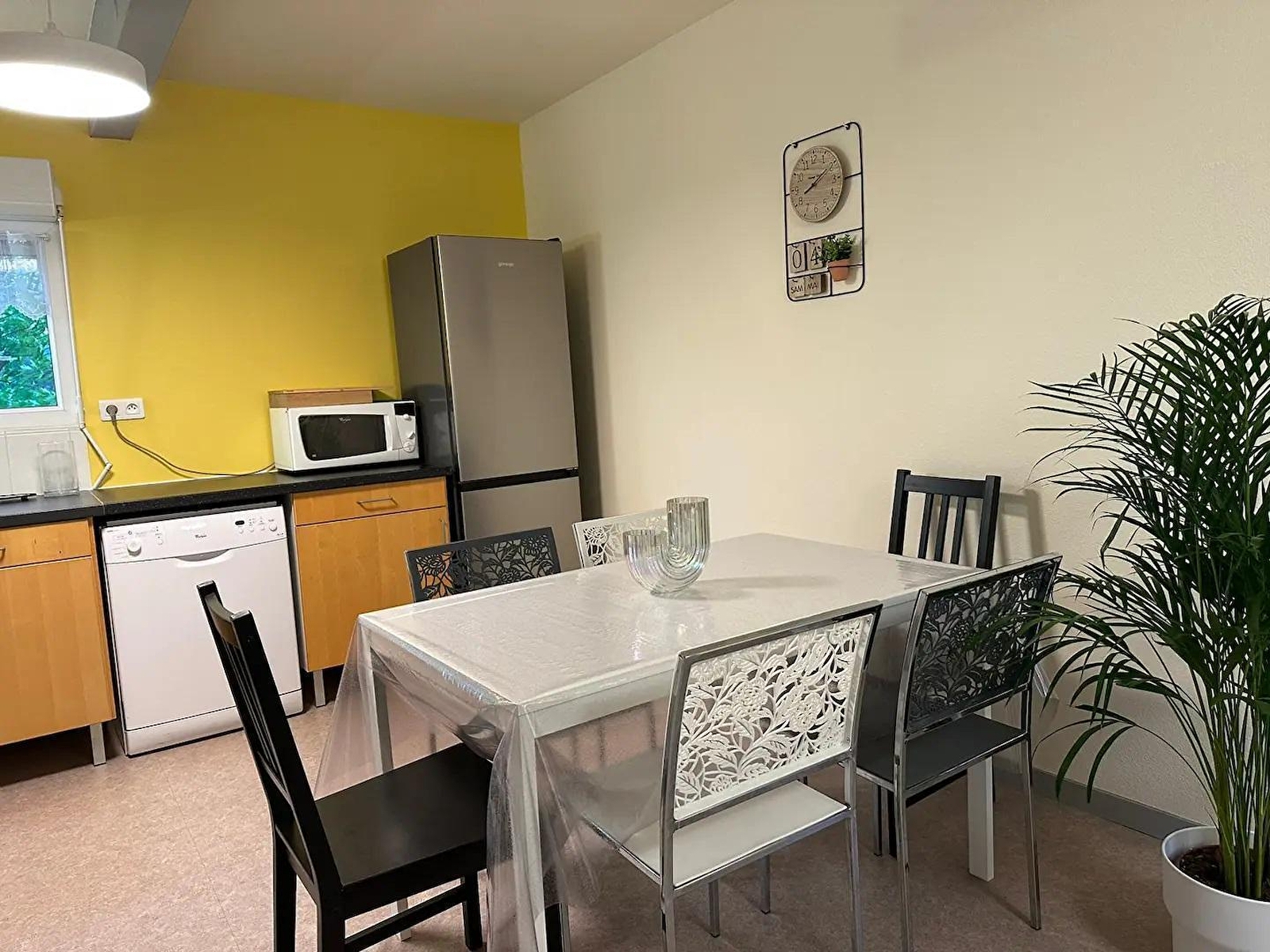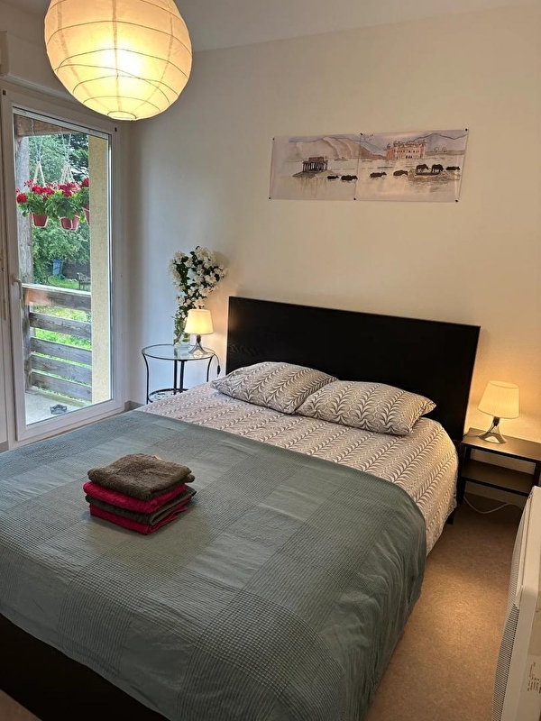 Cet appartement aménagé au 1er étage d'une maison se compose d'une pièce de vie avec cuisine toute équipée, coin salon aménagé avec 2 canapés convertibles et TV, d'une chambre avec 1 lit double (140*190), d'une salle de bain avec baignoire et d'un WC indépendant. Pour votre plus grand confort, les lits seront faits à votre arrivée, les serviettes sont fournies et le ménage est inclus. Côté extérieur, vous pourrez profiter d'un grand balcon aménagé avec un salon de jardin et d'un petit coin jardin (non attenant) avec transats et barbecue. Idéalement situé, à 600 mètres d'un parc communal entièrement ombragé de 1,5 ha dans lequel vous trouverez une aire de jeux pour enfants, un City Park, un Pump Track, un terrain de boules et un café associatif. De nombreuses promenades, à pied ou en vélo, sont possibles.Le gîte se trouve à proximité de la voie verte qui permet de rejoindre les circuits vélos de Louhans et Lons le Saunier. La ville thermale de Lons le Saunier se trouve à 3 kms et est accessible en vélo. Sur demande et en supplément, possibilité de préparation de repas par la propriétaire