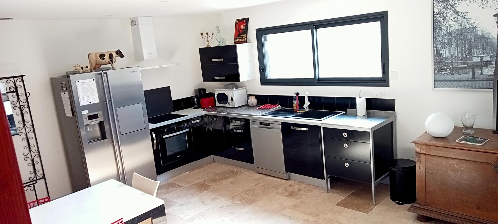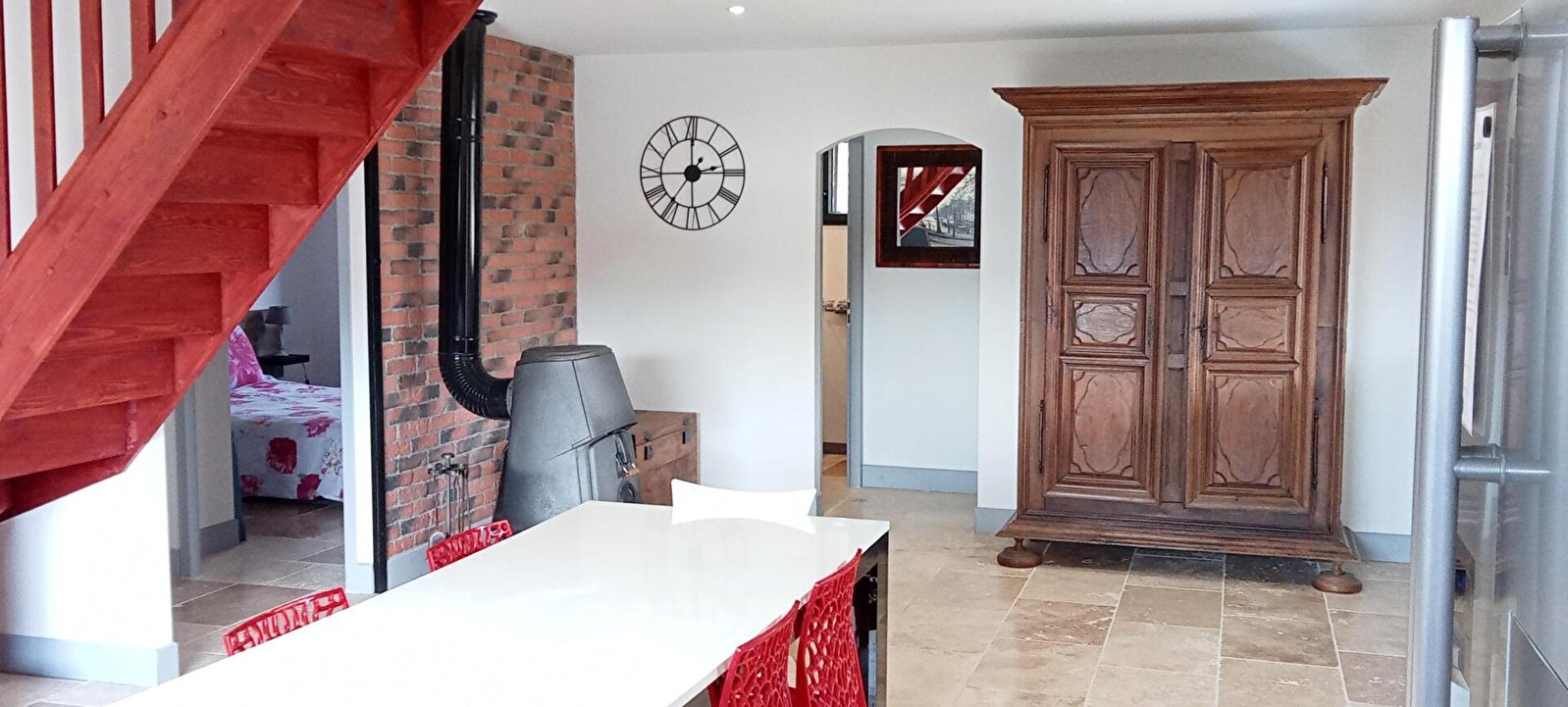Venez découvrir cette jolie maison indépendante, idéalement située entre le vignoble jurassien et la région des Lacs, à proximité des sites touristiques tels que Château-Chalon, Baume les Messieurs ou encore les cascades du Hérisson. Au rez-de-chaussée, vaste pièce à vivre avec cuisine entièrement équipée, salle à manger et espace salon avec canapé et télévision écran plat. Une chambre équipée d'un lit de 160x200. Salle d'eau avec douche à l'italienne, wc indépendants. Buanderie avec lave linges et rangements. A l'étage, deux chambres, l'une avec un lit de 140 et l'autre avec deux lit de 90. Wc indépendants. A l'extérieur, cour et belle terrasse abritée, avec salon de jardin et barbecue. Local fermé pour vélos. Réservez vite votre séjour !
