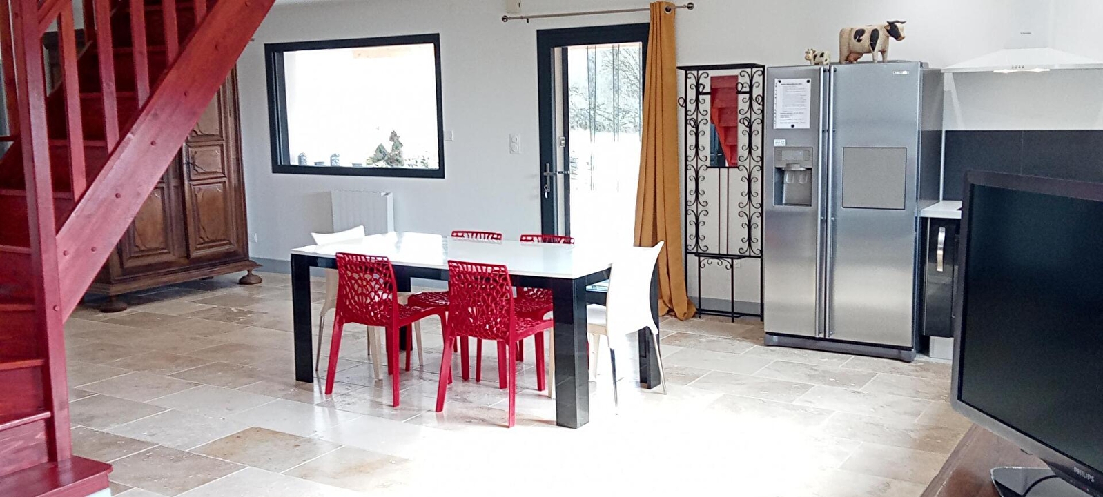 Venez découvrir cette jolie maison indépendante, idéalement située entre le vignoble jurassien et la région des Lacs, à proximité des sites touristiques tels que Château-Chalon, Baume les Messieurs ou encore les cascades du Hérisson. Au rez-de-chaussée, vaste pièce à vivre avec cuisine entièrement équipée, salle à manger et espace salon avec canapé et télévision écran plat. Une chambre équipée d'un lit de 160x200. Salle d'eau avec douche à l'italienne, wc indépendants. Buanderie avec lave linges et rangements. A l'étage, une chambre avec deux lit de 90. Wc indépendants. A l'extérieur, cour et belle terrasse abritée, avec salon de jardin et barbecue. Local fermé pour vélos. Réservez vite votre séjour !