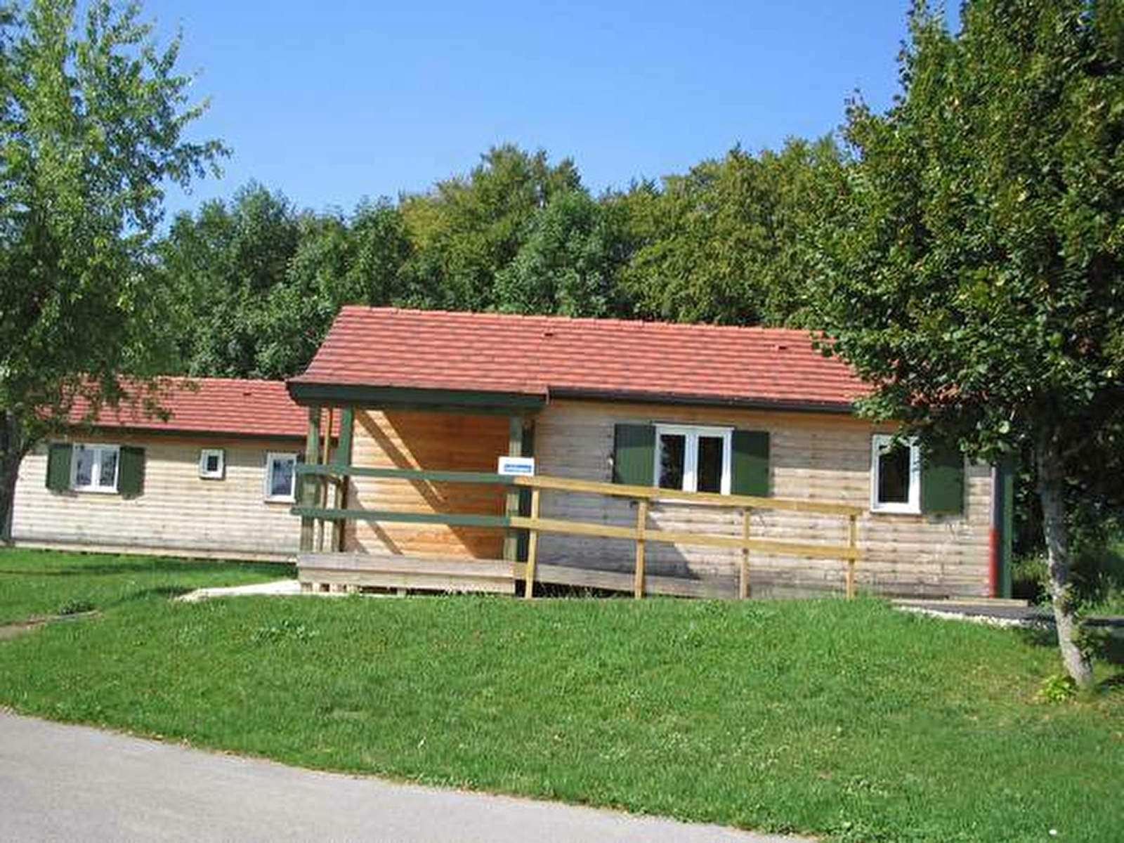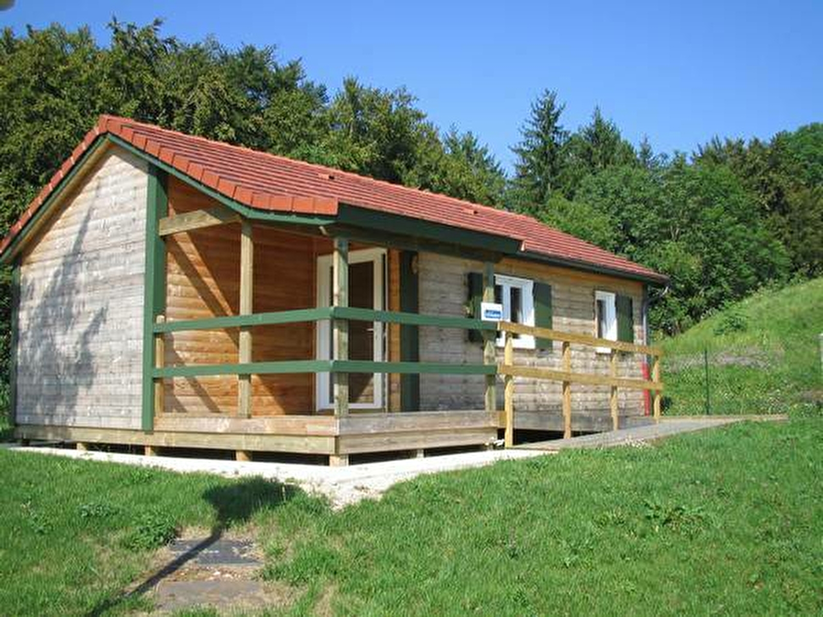 Chalet en bois de 35 m² situé sur le terrain du camping municipal, sur les hauteurs du village, idéal pour les couples avec enfants. Accès à la piscine du camping (piscine de plein air chauffée, ouverte en juillet-août), belle exposition, 10 m² de terrasse couverte avec salon de jardin, bains de soleil, barbecue. Pièce à vivre avec coin repas, kitchenette avec lave-vaisselle, 4 plaques, four, hotte, frigo, coin salon avec banquette-lit 2 places, TV. 2 chambres : 1 lit de 140 dans la première, 3 lits de 1 personne dont 1 lit superposé dans la 2ème, rangement, salle d'eau, WC. Lave-linge et sèche-linge à l'accueil du camping. En option : location de draps (11 € le kit 1 personne et 17 € le kit 2 personnes), ménage fin de séjour (60 €).