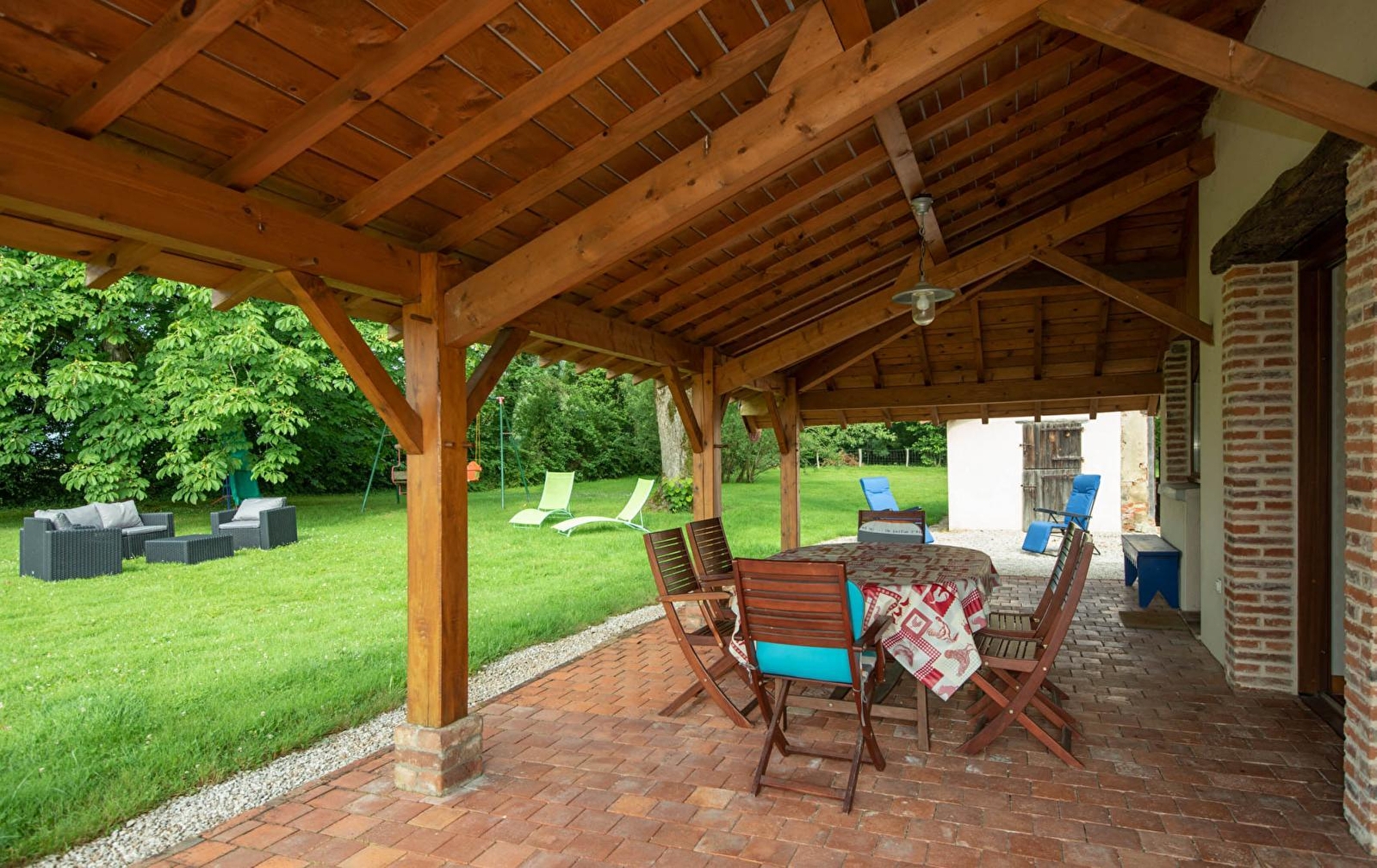 Suzanne et Christophe vous accueillent dans cette ancienne ferme bressane, située dans un paisible hameau à 1,5 km du bourg de Frontenaud. Faites une petite balade dans le village pour admirer son église de style gothique flamboyant dotée d'un retable du 16ème siècle ; son calvaire à proximité de l'église ; l'ancien château des Crozes pourvu d'un grand salon présentant des peintures sur le thème de l'Histoire de France (actuelle administration d'un EHPAD) ; et le Moulin du Venay sur la Gizia. Passionnés de sensations fortes, le circuit automobile de Bresse vous accueillera pour des tours de piste ! Gîte spacieux, confortable et lumineux. Belle restauration patrimoniale : poutres apparentes, murs en briques. Détendez-vous à l'ombre des grands marronniers et tilleuls du vaste jardin : la cour servira de terrain de pétanque naturel et les enfants pourront profiter des différents jeux mis à leur disposition (balançoire …). Installez-vous sous la terrasse couverte pour déguster le vin de pays offert par les propriétaires à votre arrivée !