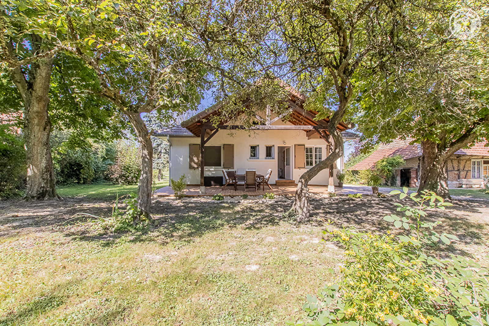 Soucieuse du bonheur animal, propriétaire de la "Ferme des 3 Allures" toute proche (élevage de "poneys shetlands", pension & refuge pour les vieux chevaux, ânes etc… / visite et diverses prestations à découvrir sur le site comme : promenades "en main" pour les enfants, randonnées accompagnées par les propriétaires…) mais également apicultrice, Anne-Elodie vous accueille au sein d'un ravissant pavillon d'architecture "seventies" soigneusement restauré & relooké, niché en lisière immédiate de champs & prairies (dont une mini pâture accueillant certains de leurs chevaux & poneys qui borde le jardin, pour le bonheur des enfants), au creux d'un agréable cadre champêtre préservé. Calme & tranquillité, blotti au cœur d'un paisible hameau rural jouxtant le centre d'un petit village typique (doté d'une belle piscine communale). Gîte de très bon confort. Chaleureux cachet campagnard aux accents contemporains d'inspirations nordiques. Beaucoup de charme. Ambiance zen & douce. Littéralement apaisant & relaxant. Spacieuse terrasse abritée de 35m² sise côté jardin complétée par une seconde large terrasse panoramique à l'ouest (ouverte sur les prés) offrant de sublimes couchers de soleil & une belle vue dégagée sur la campagne environnante. Vous disposez d'un vaste parc de 1 ha soigneusement engazonné, végétalisé & arboré (dont un verger fruitier : pommiers, pruniers…), littérale aire de jeux naturelle, comprenant un bucolique petit étang privé lové au bout du jardin (avec grenouilles, poissons…) doté d'une table de pique-nique ombragé sous les arbres.