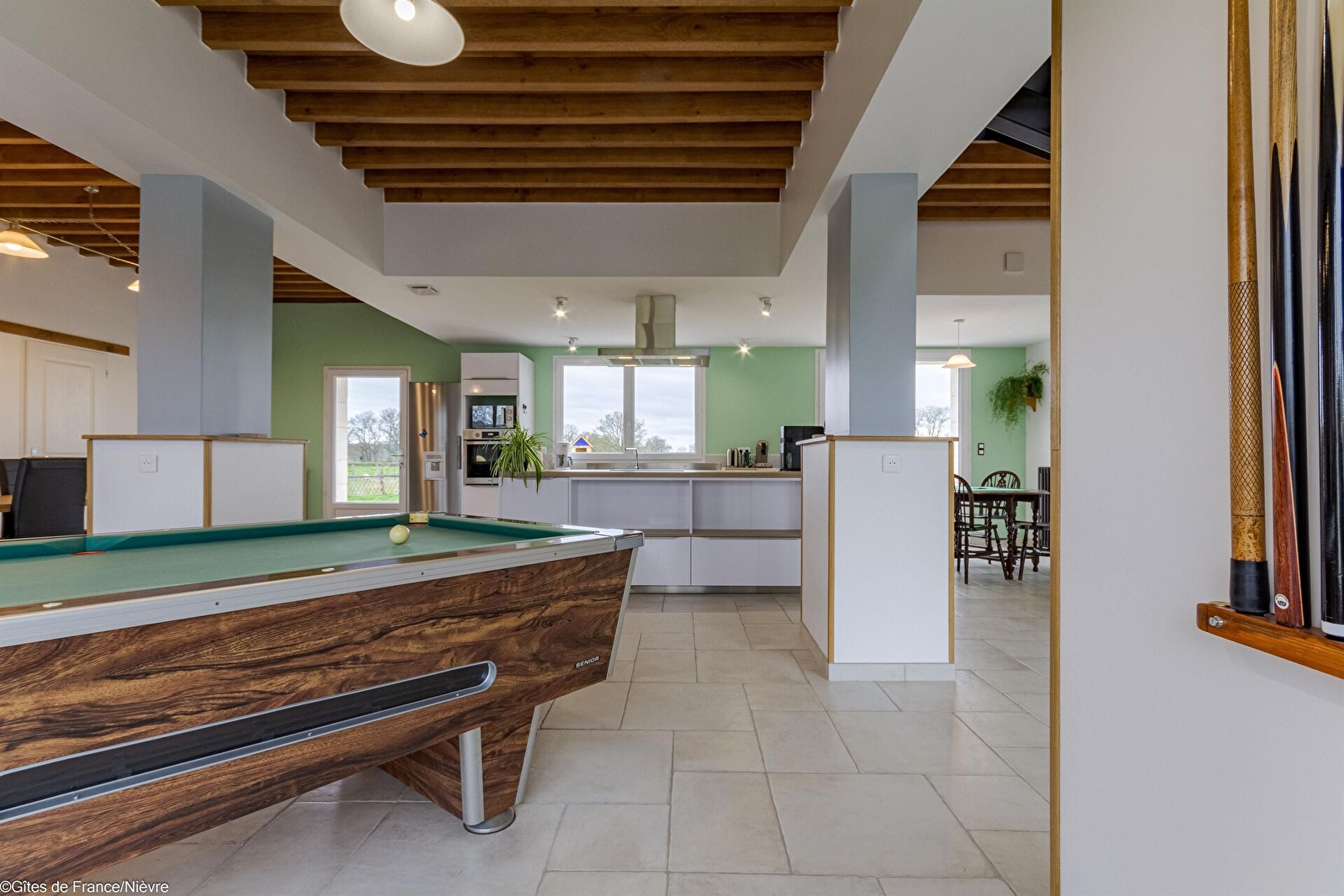 Le gîte comporte également un billard, une table de jeu, 2 terrains de pétanque et un barbecue. Les enfants seront ravis de découvrir l'espace de jeux qui leur est dédié. Si vous souhaitez en apprendre davantage sur la région, la bibliothèque comporte des ouvrages (souvent anciens) qui vous aideront à apprécier le patrimoine historique local.