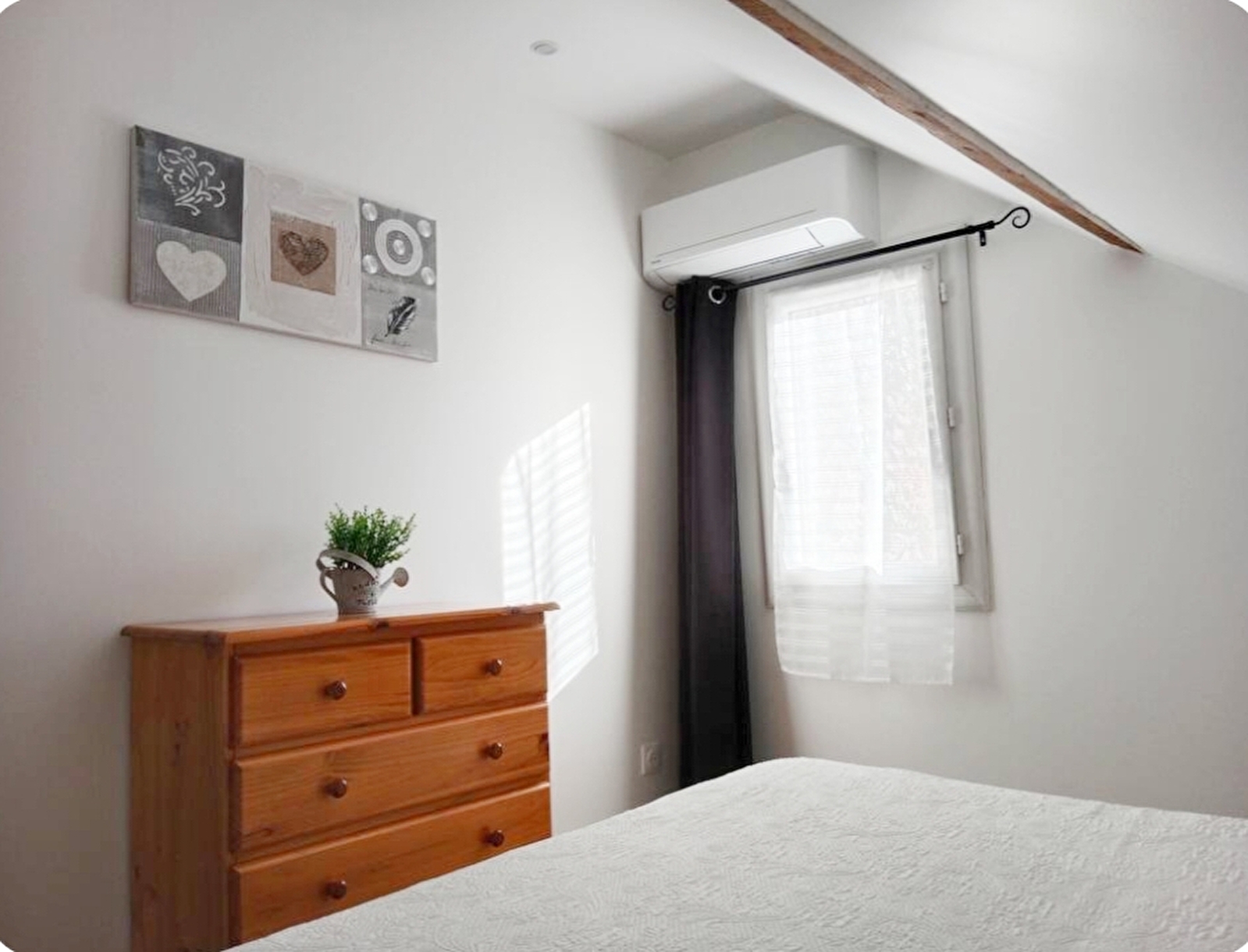 Maison meublée située dans un quartier calme à 400 m des thermes. Terrasse aménagée, jardin d'agrément. Rénovée en 2023. 2 chambres à l'étage (1 avec un lit de 140 et 1 avec 2 lits de 90), 1 pièce à vivre avec cuisine équipée (lave vaisselle, four, frigo congélateur, lave linge), salle d'eau avec douche à l'italienne. Télévision, replay, internet, climatisation. Salon de jardin, chaises longues, parasol, barbecue, abris pour les vélos.