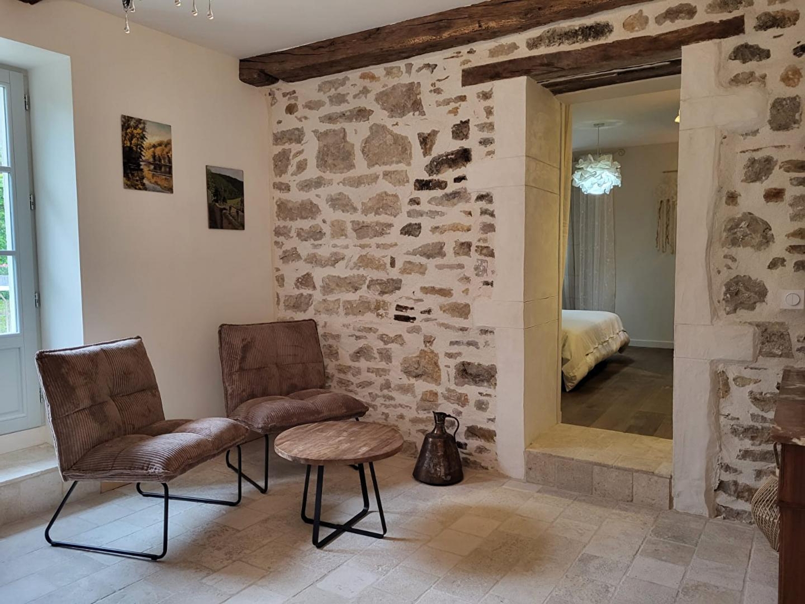Au cœur du vignoble jurassien, dans un village classé "cité de caractère", venez séjourner dans cette maison en pierre rénovée et de plain-pied. Elle se compose d'une cuisine toute équipée, d'un coin repas, d'un espace salon avec fauteuils et TV, d'une chambre avec 1 lit double (160*200) et d'une salle d'eau avec douche et WC. Pour votre plus grand confort, le lit sera fait à votre arrivée, les serviettes de toilettes sont fournies et le ménage est inclus. Côté extérieur, un salon de jardin et un barbecue vous permettront de profiter des beaux jours. Parking dans la cour devant le gîte. Idéalement situé, à 10 mns de Baume-les-Messieurs et de Château-Chalon, classés plus beaux villages de France, les pêcheurs pourront également s'adonner à leur passion à 200 mètres, dans la rivière de la Seille. Les amateurs de vélo et randonneurs, pourront apprécier la multitude de circuits en pleine nature, à travers des paysages variés. Et si les clés du bonheur se trouvaient ici ?
