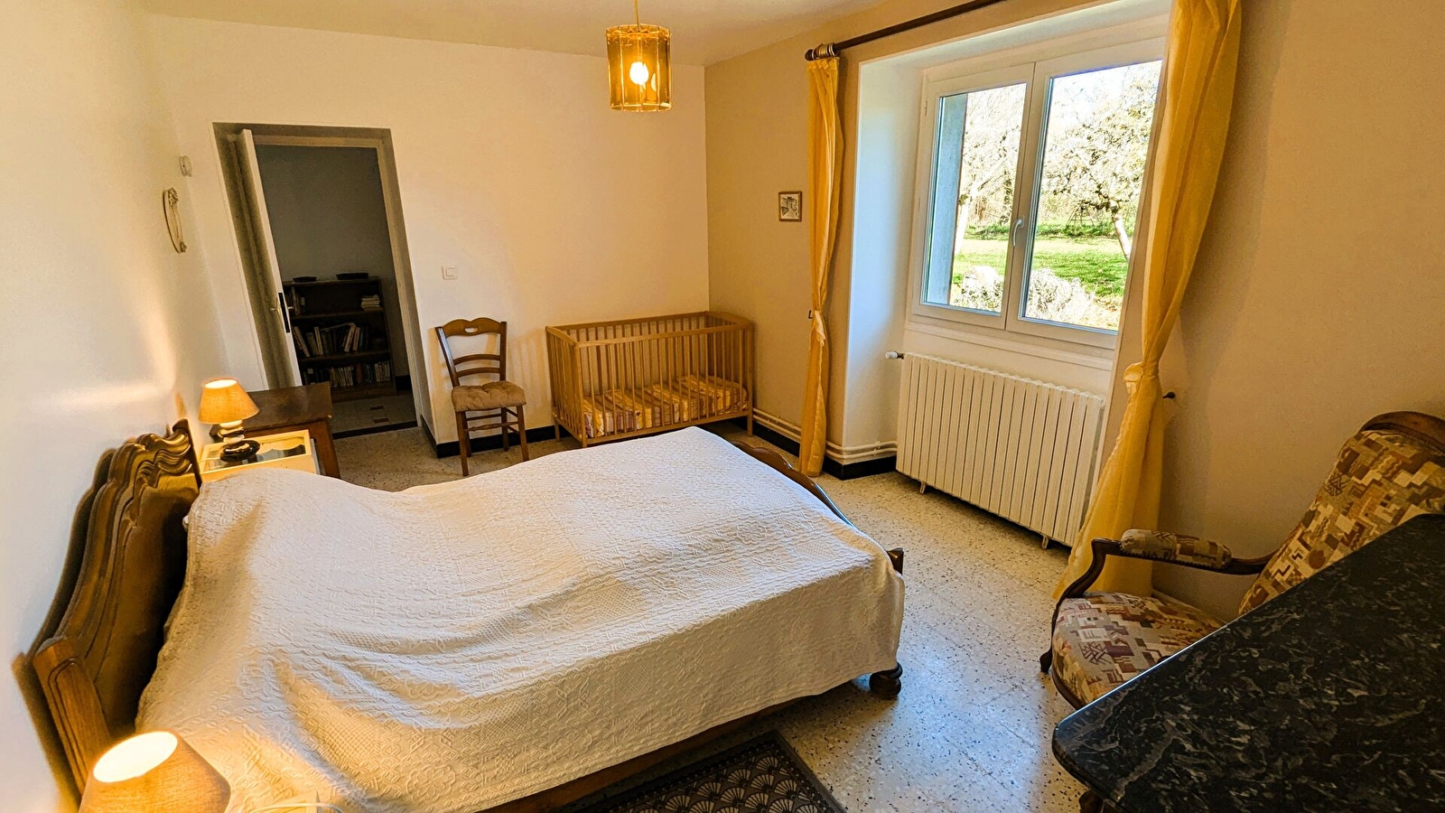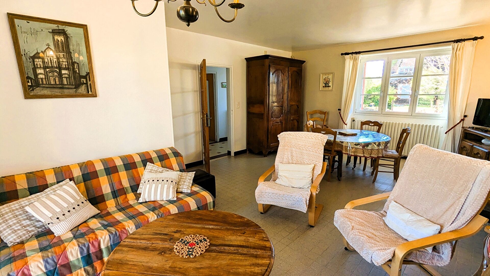 Le gîte est indépendant, de plain pied et entouré d'un vaste jardin non-clos. Un couloir distribue la cuisine équipée, le séjour-salon traversant (TV, lecteur DVD, canapé convertible), 1 chambre avec 1 lit 140x190. Lit bébé et chaise-haute. Salle de bain avec baignoire et douche, WC indépendant.