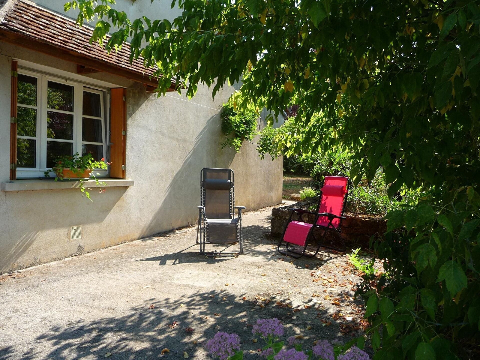 Terrasse close avec salon de jardin et barbecue. Animaux non admis.
