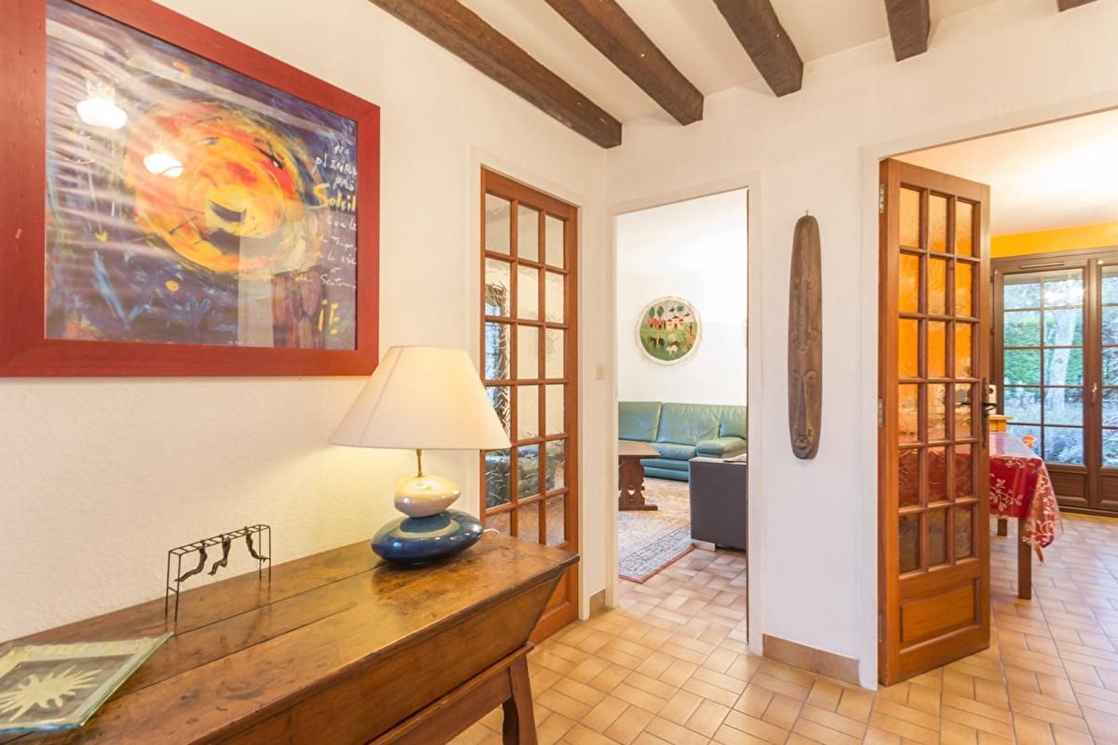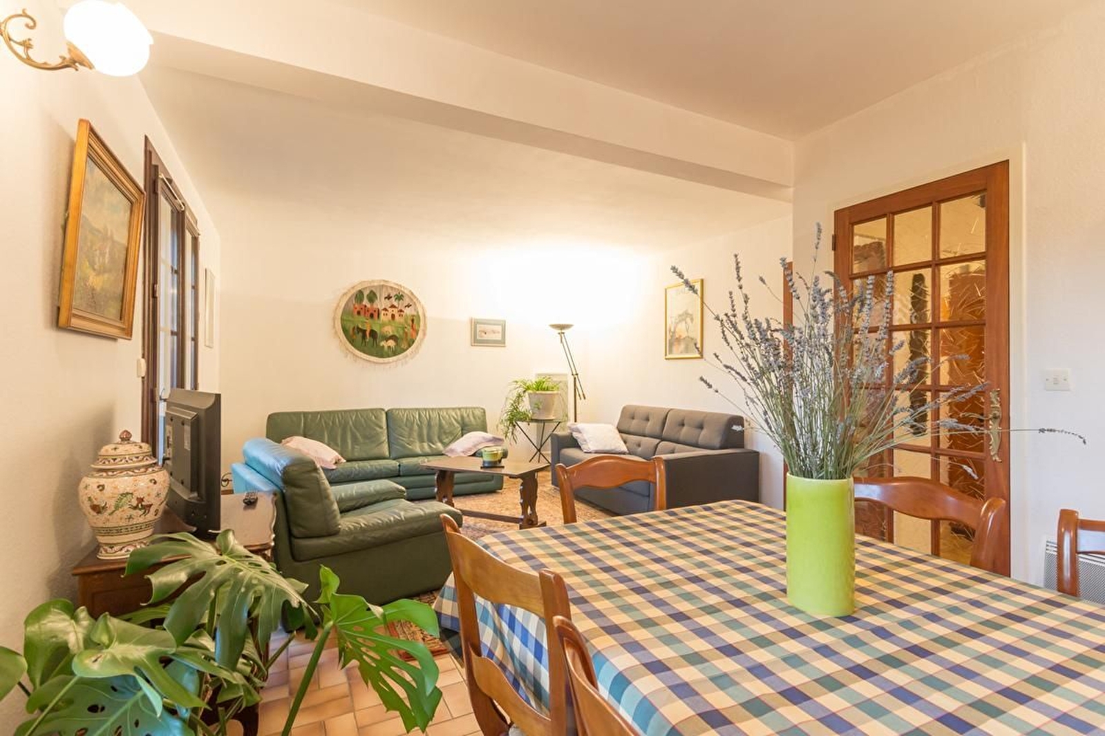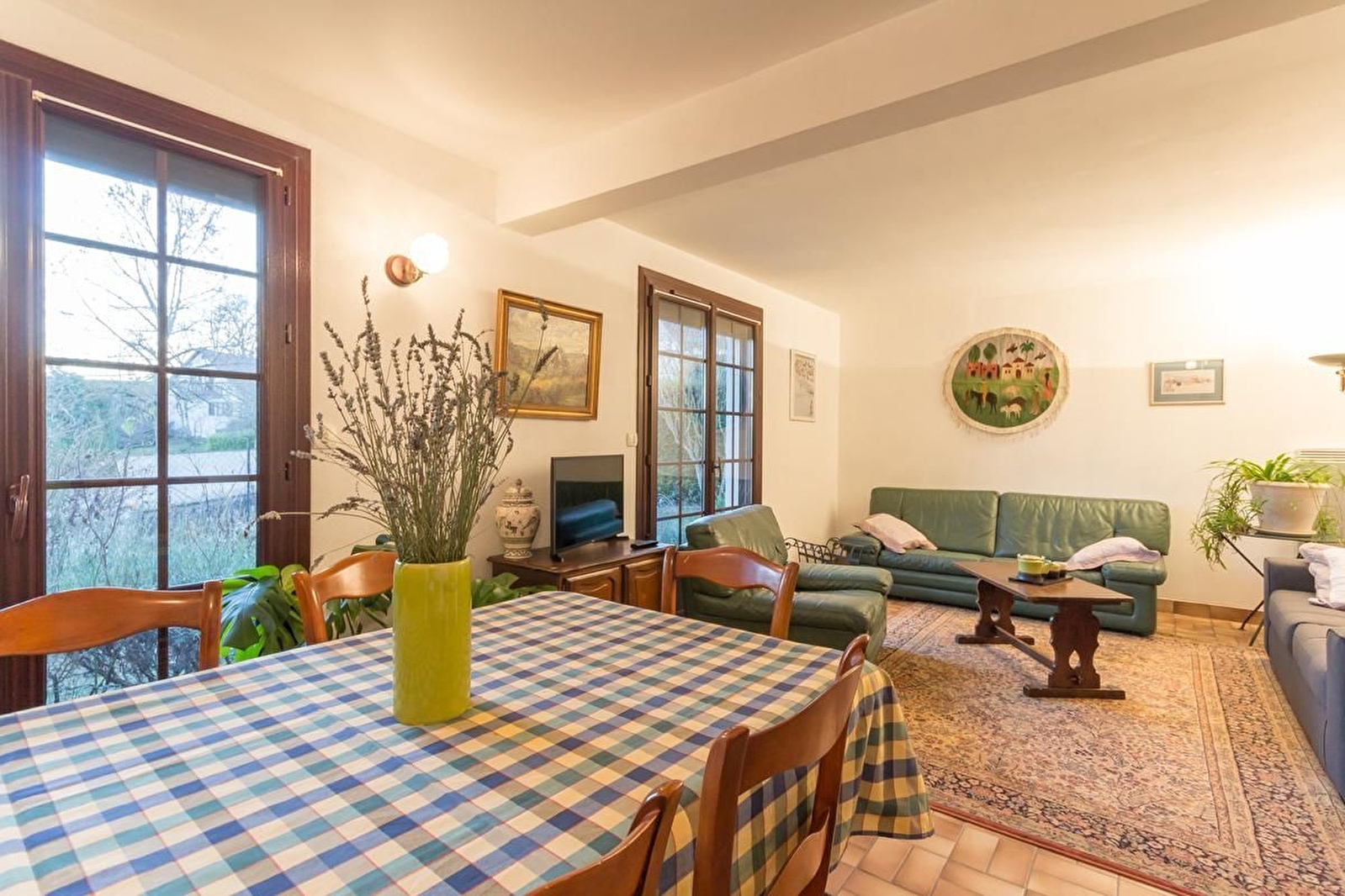Gîte mitoyen à la maison des propriétaires dans un quartier calme. Rez-de-chaussée surélevé : entrée, salle à manger et salon avec canapé convertible, cuisine avec ouverture sur la terrasse, une chambre avec un lit 140, une chambre avec 2 lits 90 jumelables, salle d'eau et WC. Au sous-sol : garage et machine à laver. Parking fermé dans la cour et places à disposition devant la maison. Jardin commun de 1000 m² entourant la maison avec balançoire et petite mare. Partie privative avec terrasse de plain pied.