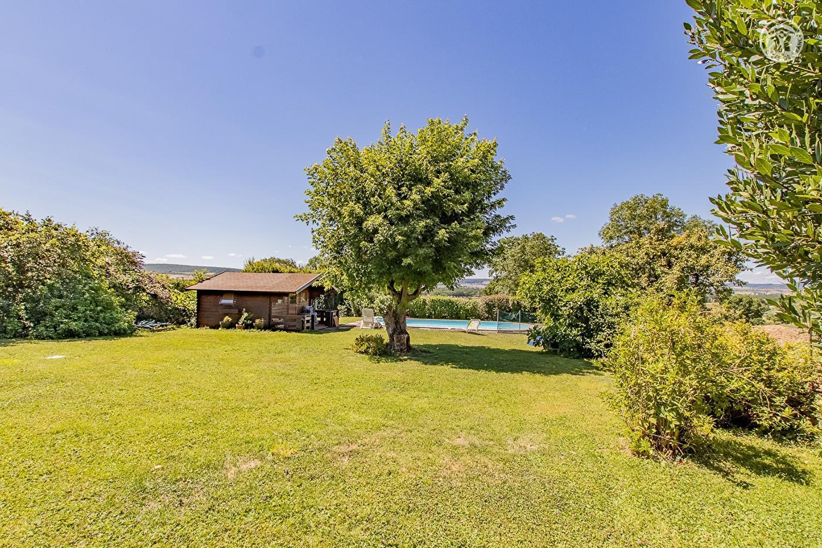Anglais d'origine et bourguignons d'adoption, Glenda & Roger vous accueillent au sein d'une authentique demeure de vigneron du XVIIe, chargée d'histoire & intégralement restaurée, blottie au calme en bordure d'une petite ruelle & d'un bucolique vaste plateau de prairies, au creux d'un paisible hameau résidentiel sis à deux pas du centre bourg d'Ameugny où trône une majestueuse église romane classée du XIe. Parfaitement préservé & pétri de charme, lové "en balcon" à flanc de coteau sud-ouest exposé sur une colline dominant la verdoyante vallée de la Grosne & le magnifique bocage clunisois, à deux pas des premiers vignobles et toute proximité des contreforts boisés du massif Sud-Bourgogne, ce pittoresque village typique du haut Mâconnais dispose d'un riche patrimoine (église romane, maisons vigneronnes traditionnelles avec galeries mâconnaises, lavoirs, fontaines…) & d'un cadre paysagé vallonné littéralement enchanteur. Gîte de très bon confort. Ultra spacieux. Chaleureux cachet campagnard mixant l'esprit d'une "douce maison de famille" à l'ambiance dépaysante d'une ancienne demeure. Beaucoup de charme. Cosy & douillet. Vaste terrasse couverte côté cour complétée, côté jardin, par un large balcon-terrasse panoramique offrant une magnifique vue dégagée sur la ravissante campagne environnante. Agréable jardin clos engazonné de 800m², arboré & fleuri, doté d'une belle piscine (4x8m / accès douche & Wc).