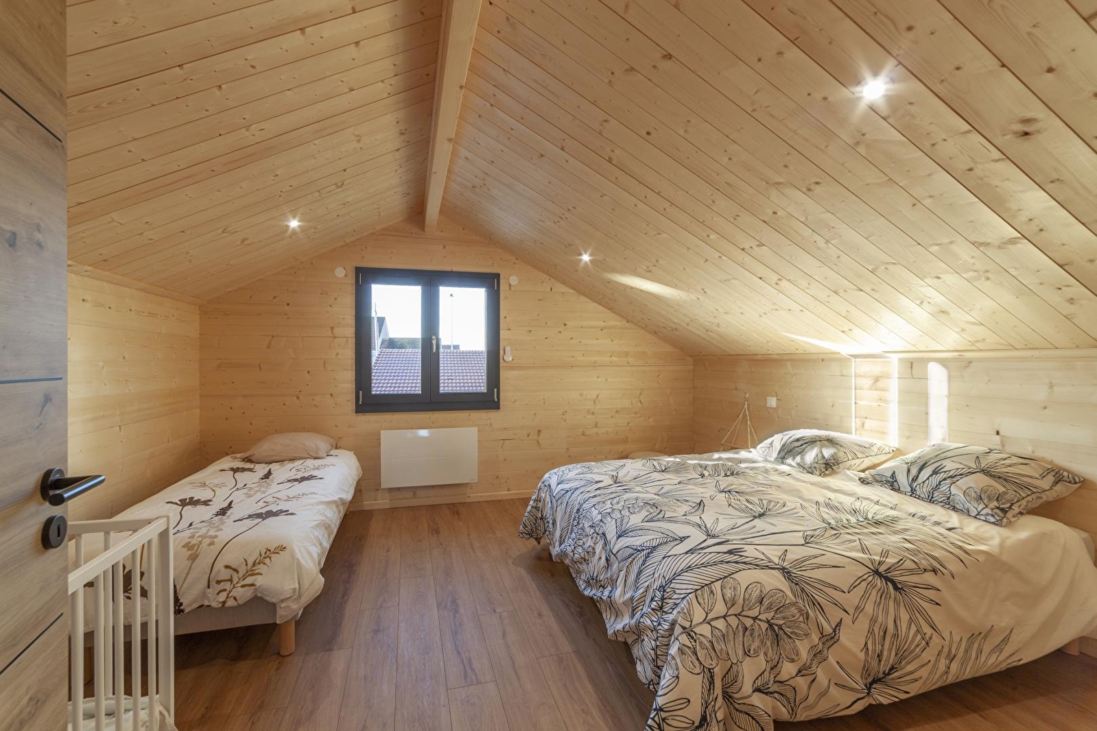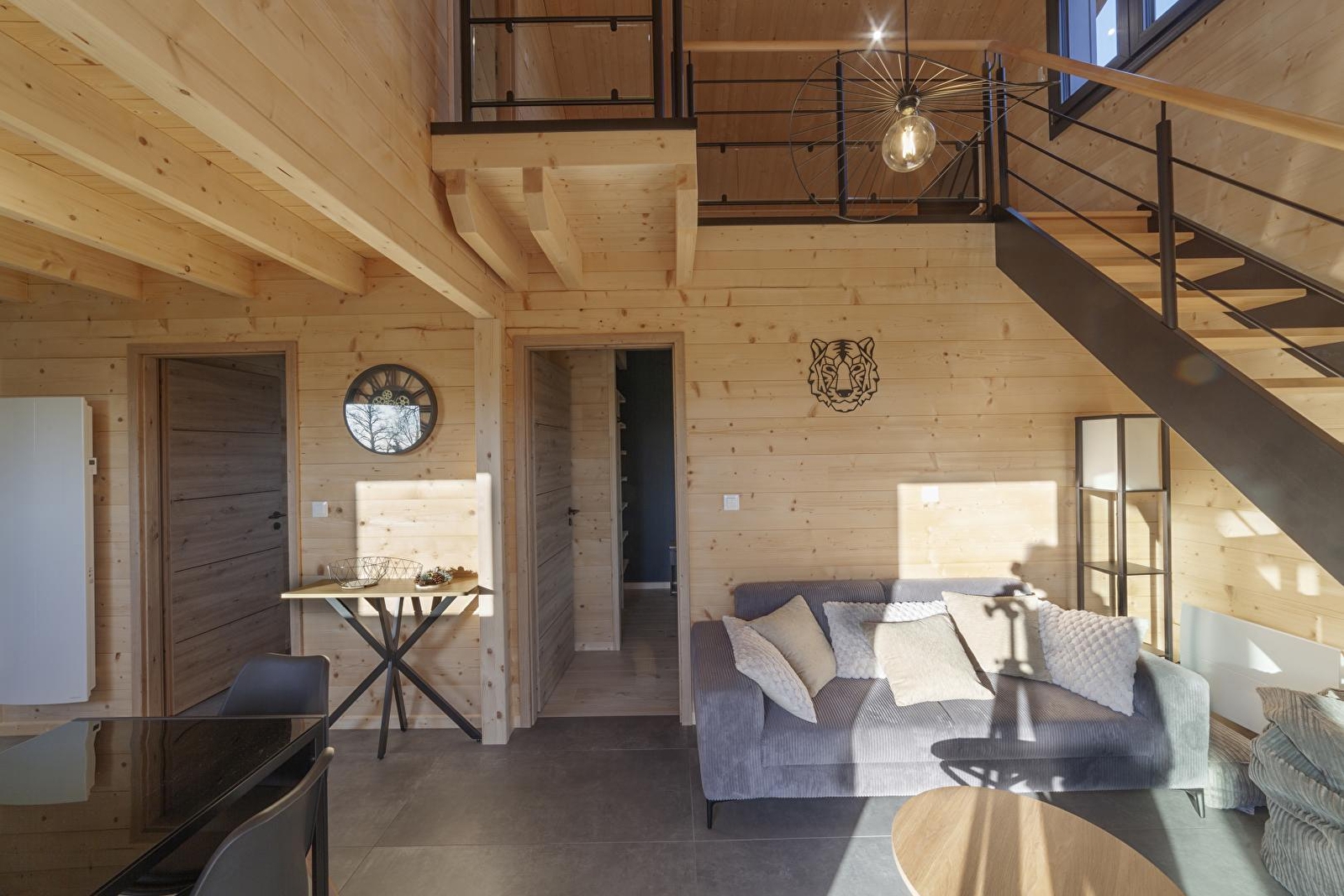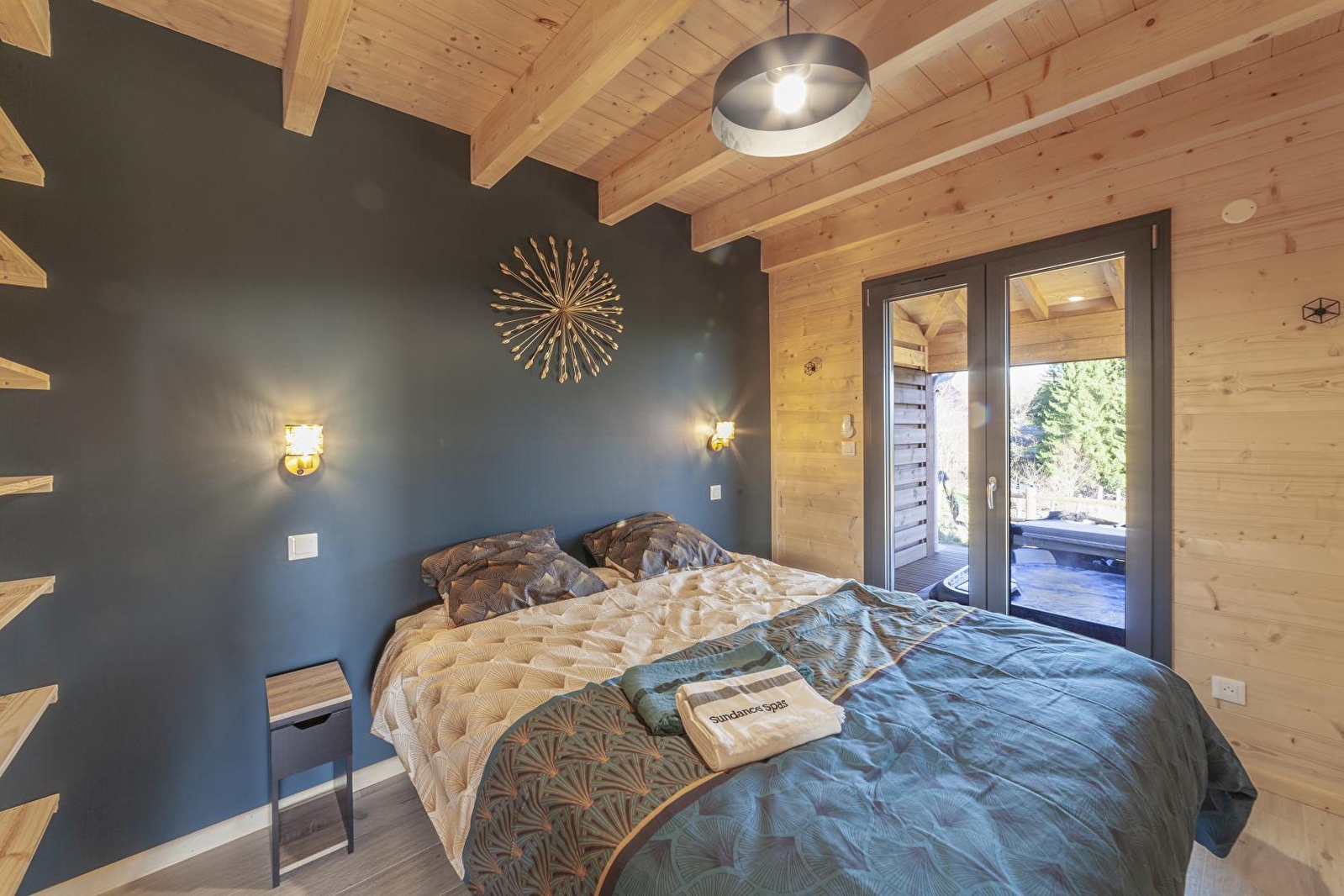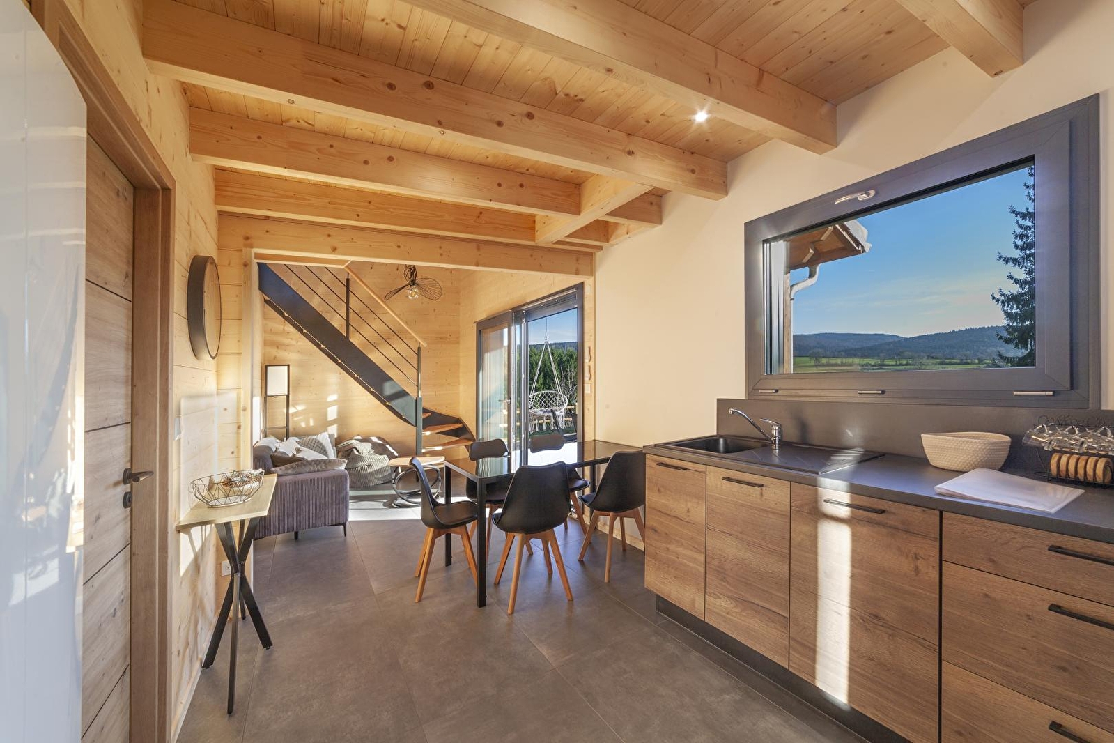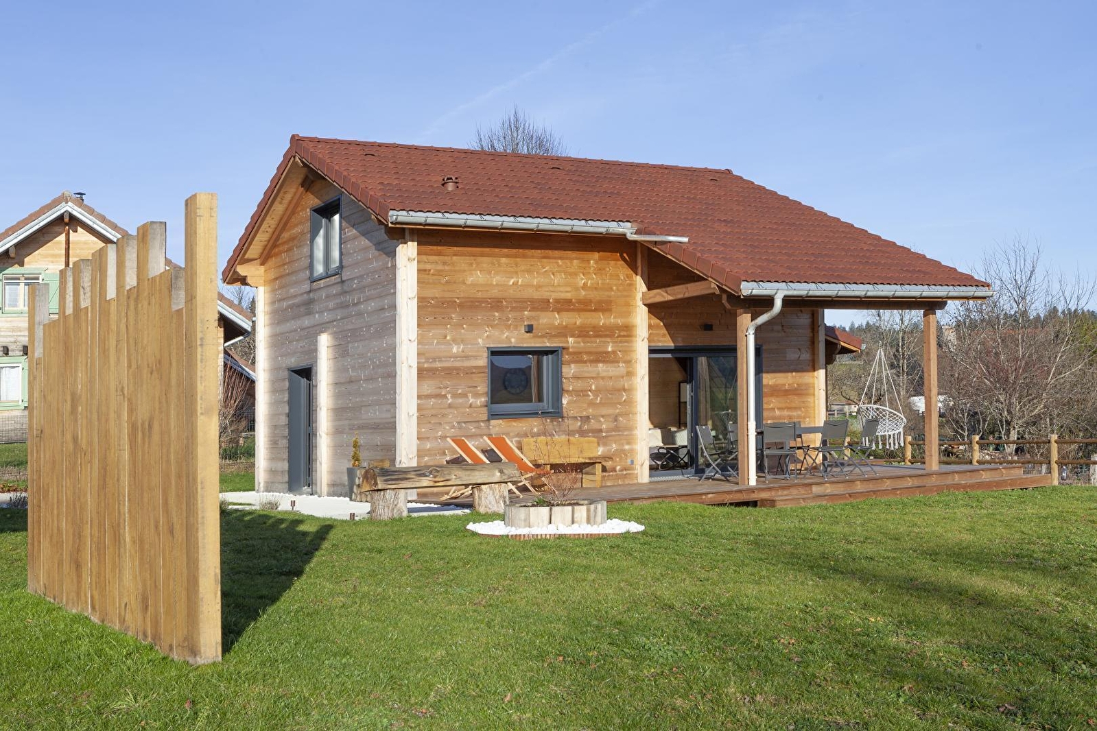 Au cœur du Jura, ce chalet en bois vous accueille dans un environnement calme et naturel, idéal pour un séjour de détente et de ressourcement. Entre paysages verdoyants et spécialités locales, vous profiterez pleinement d'un cadre authentique et préservé. Il dispose au rez-de-chaussée d'une cuisine entièrement équipée ouverte sur un petit coin salon avec une vue dégagée sur la nature environnante, d'une chambre avec un lit double (160 x 200 cm) avec accès direct à la terrasse et au spa, d'une salle d'eau avec douche et WC. A l'étage, une mezzanine-salon avec canapé, télévision et jeux de société, une chambre avec 1 lit double (160*200) et 1 lit simple (90*190). Pour votre plus grand confort, les lits seront faits à votre arrivée et le linge de toilettes est fourni. À l'extérieur, vous apprécierez une grande terrasse ensoleillée, en partie couverte, équipée avec salon de jardin, plancha, transats et chaise suspendue, ainsi qu'un spa extérieur couvert, idéal pour se détendre après une journée de découverte de la région. Un lieu parfait pour se retrouver en famille ou entre amis et profiter du calme du Jura, entre nature et bien-être. Idéalement situé, à 20 minutes des premières pistes de ski de fond et raquettes, vous pourrez également découvrir Nozeroy, cité médiévale, Arbois capitale des Vins ou encore vous rafraichir au lac de Chalain aux beaux jours. Note : ce chalet est situé sur un terrain avec un autre gîte pour 2 personnes mais tout a été conçu pour que chaque hébergement conserve son intimité. Carport pouvant abrité une voiture et un emplacement pour camping-car avec possibilité de vidange. Un forfait ménage de 60 euros s'appliquera automatiquement au moment de la réservation.