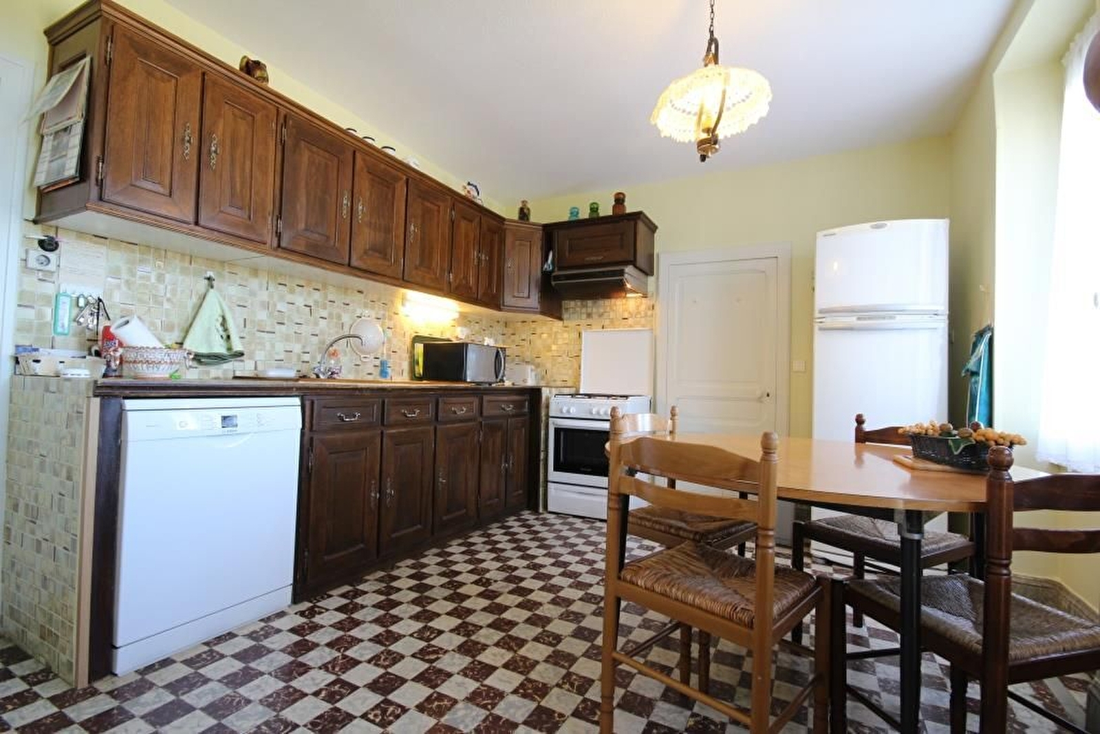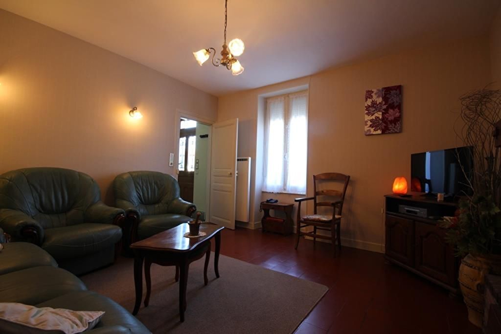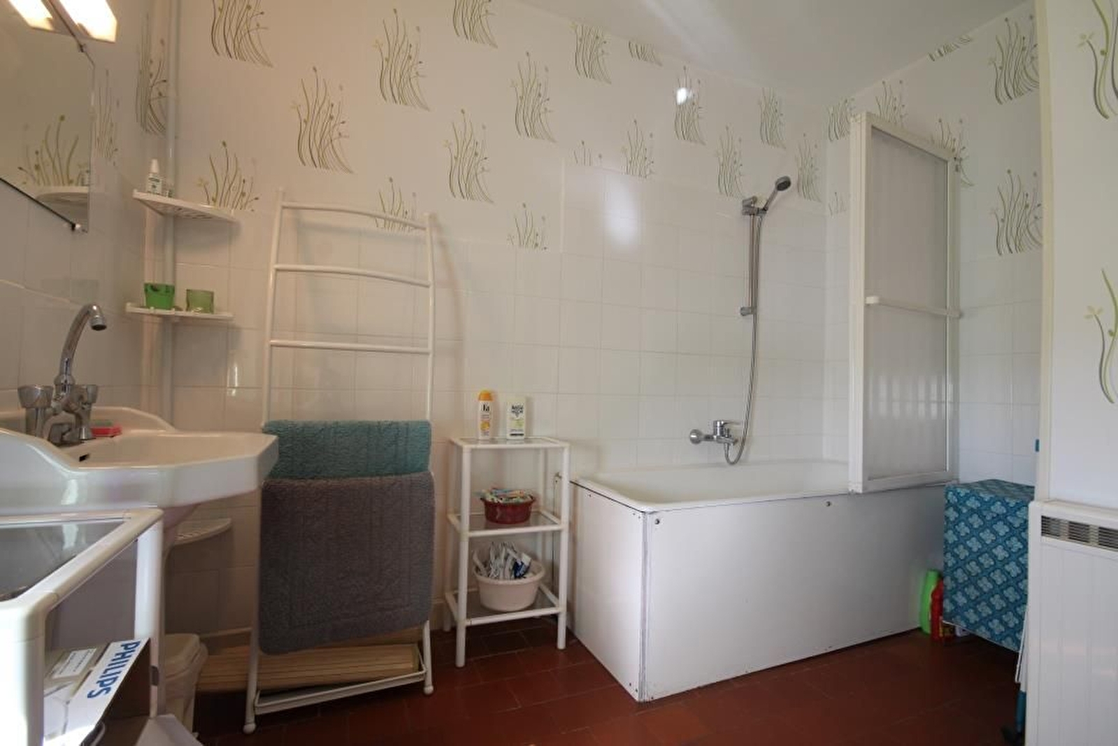 Maison individuelle située au bord de la D945 : cuisine, salle à manger, salon, buanderie avec lave-linge et sèche-linge, wc séparé, salle de bains (baignoire). Au 1er étage, 1 chambre avec 1 lit 120x190 et 1 canapé convertible pour 2 personnes, et 1 chambre avec 1 lit 140x190. Ping-pong, 2 VTT. Meubles de jardin, garage, cave. Grande cour close de 2500 m².