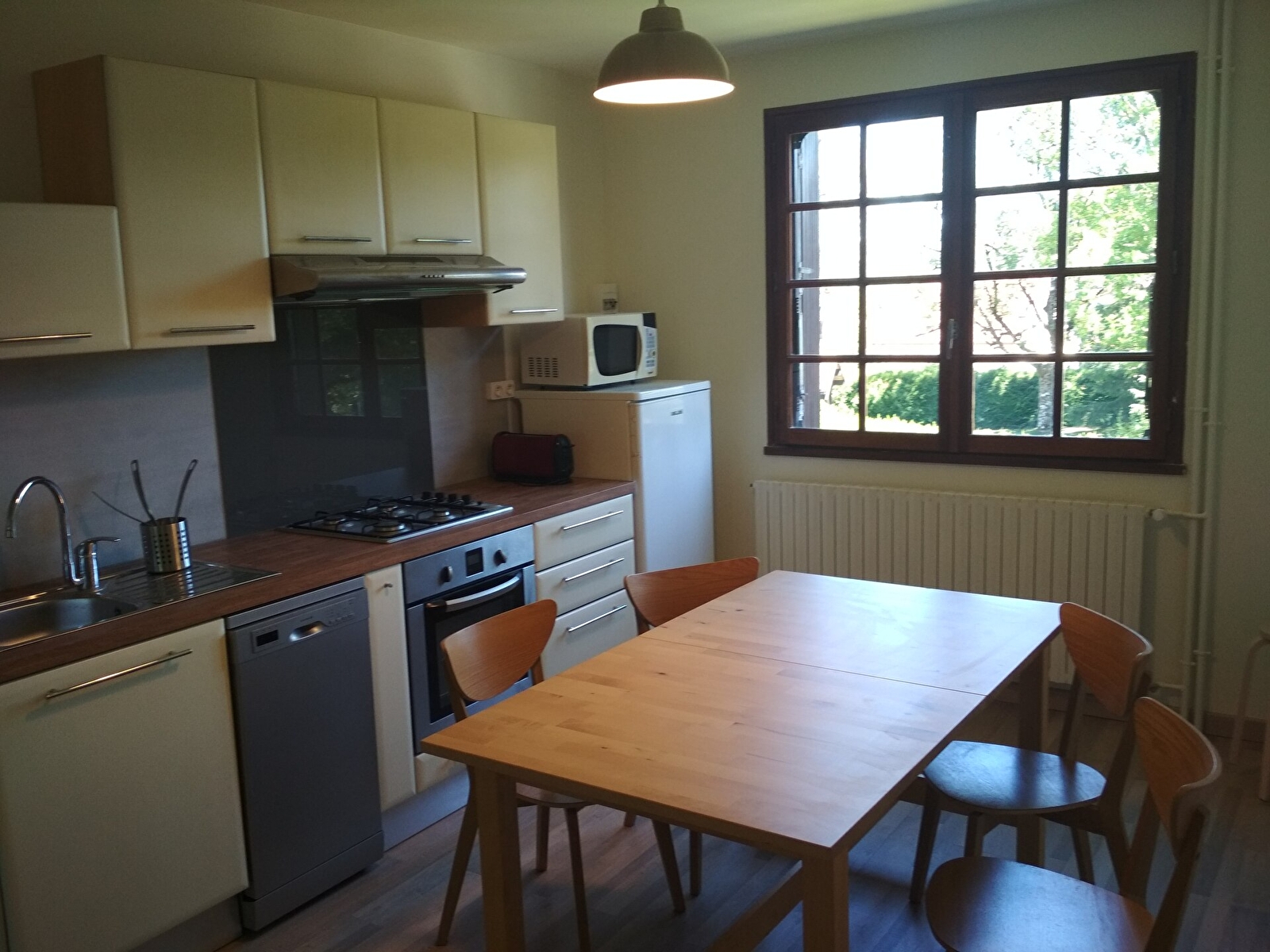 Une cuisine bien équipée avec four, micro onde, lave vaisselle, réfrigérateur/ congélateur, plaque gaz et hotte. Table modulable.