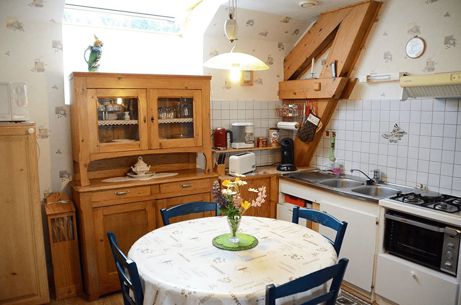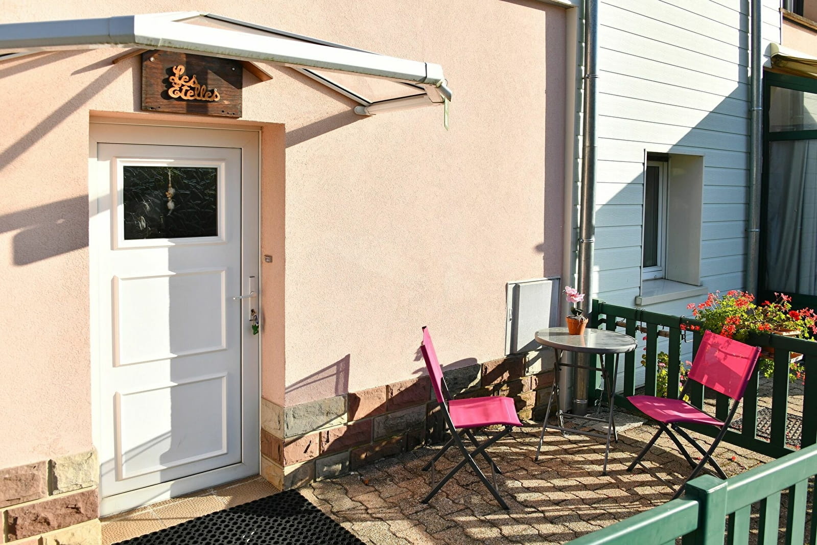 Gîte coquet et calme mitoyen à la maison du propriétaire. Parking sécurisé - Au RDC: hall pour rangement: vélos, skis, poussette. A l'étage cuisine intégrée ouverte sur le salon séjour, 1 chambre à coucher équipée d'un lit de 140x190, un WC indépendant et une salle d'eau.