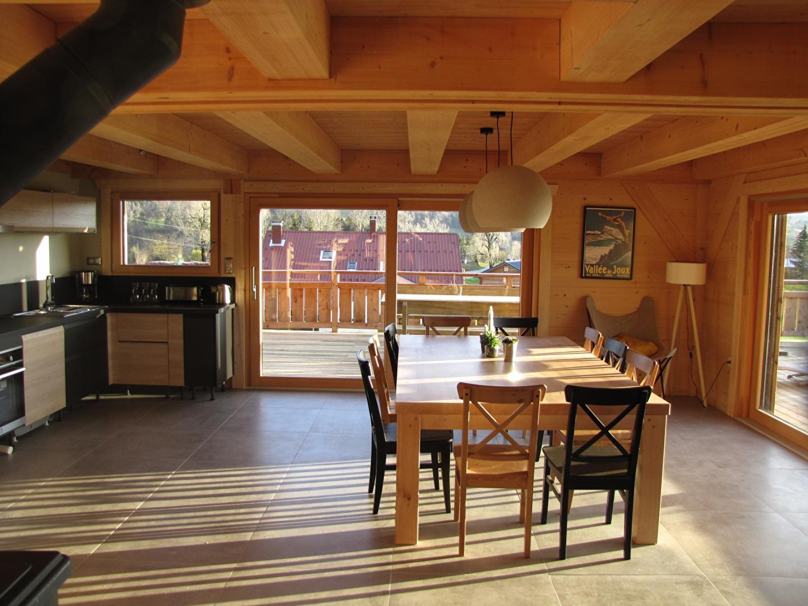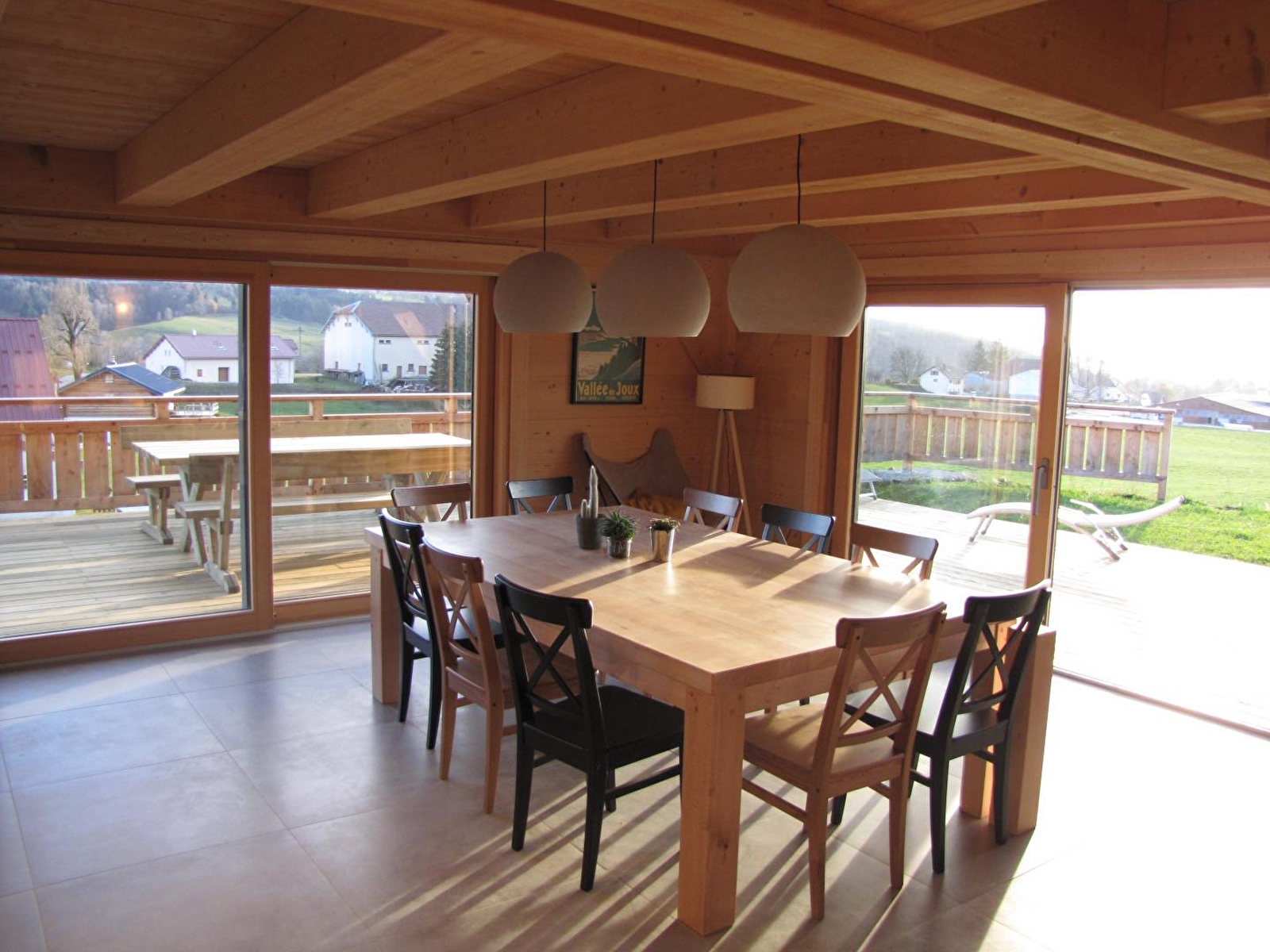 Au coeur du Haut Jura, sur les hauteurs du village, chalet indépendant offrant une belle vue sur la nature environnante. Au rez de chaussée, grande pièce à vivre avec cuisine entièrement équipée et espace salon avec canapé et télévision écran plat. Une chambre avec un lit de 180cm. Une salle d'eau avec douche à l'italienne. Wc indépendants. Au 1er étage, deux chambres avec chacune 3 lits de 90x200cm (possibilité de regrouper les lits sur demande), une quatrième chambre avec un lit de 180. Salle d'eau avec double vasques, douche à l'italienne et wc. Au sous-sol vous aurez accès à l'espace détente avec deux fauteuils relaxants, sauna et douche à l'italienne. Garage privatif fermé pour deux voitures. Côté extérieur, terrasse de 80m² équipée de salon de jardin, chaises longues et barbecue, et terrain attenant non clos. N'attendez plus pour réserver !