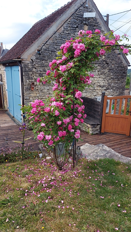 Un terrain de 750m², attenant au gîte est à votre entière disposition. Il se compose d' une grande terrasse autour de la maison avec un salon de jardin sous pergola auquel jouxte un jardin d'aromates, un verger, un potager. Animaux non admis.