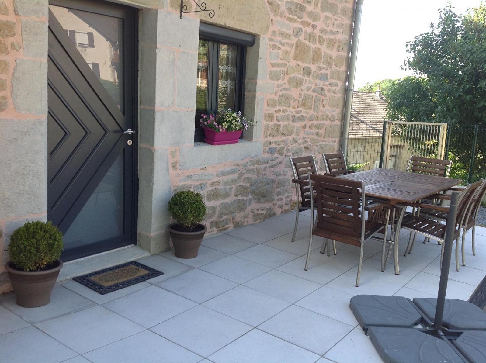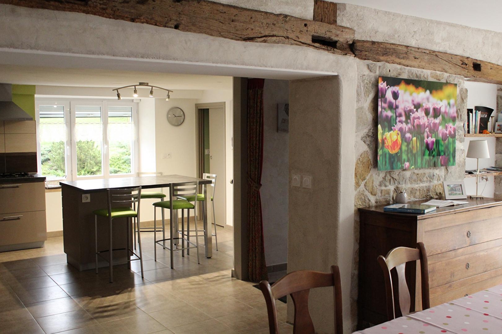 Au cœur du Jura, maison indépendante entièrement rénovée idéalement située entre vignoble et région des Lacs et à seulement quelques pas de Poligny, Capitale du Comté. Au rez-de-chaussée : cuisine indépendante toute équipée, salle à manger, coin salon avec TV écran plat , une chambre avec 1 lit 2 places en 160cm, salle d'eau avec douche à l'italienne, wc indépendants. A l'étage, la seconde chambre est composée de 2 lits 1 place et d'une salle d'eau avec une douche à l'italienne avec WC. Terrasse équipée de salon de jardin et barbecue, cour attenante non close. Lit et chaise bébé à disposition. (accessibilité PMR: pas de marche, une chambre au rez de chaussée et salle d'eau avec douche à l'italienne). Parking privatif sur place. Volets dans les chambres.