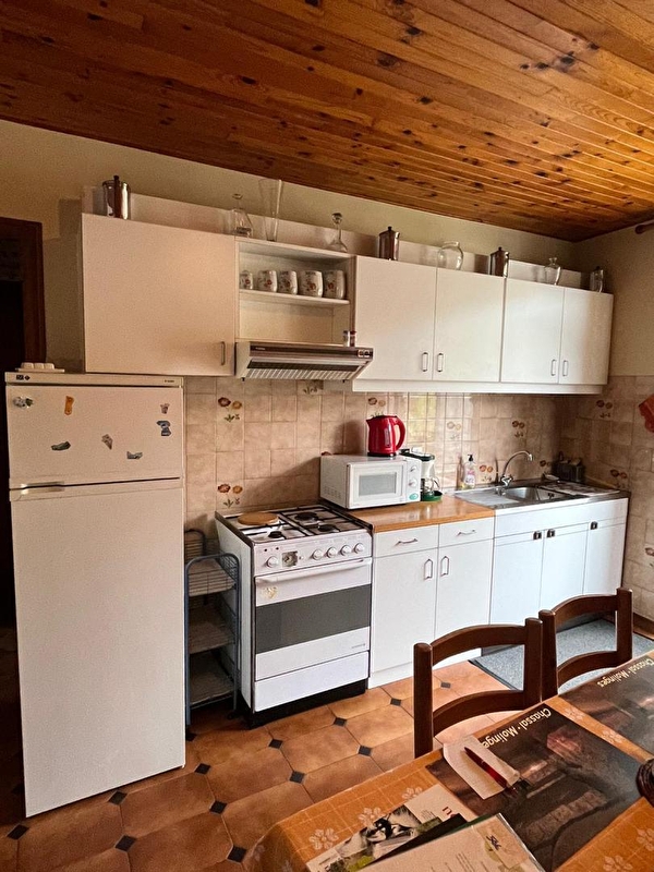 Logement au 2ème étage d'une maison où se trouvent d'autres appartements. Cuisine-séjour avec accès sur un petit balcon, salle de bains, wc indépendants, une chambre avec 1 lit 2 pl, et 1 lit 1 pl. Chauffage central. Toutes charges comprises. Garage sur demande.