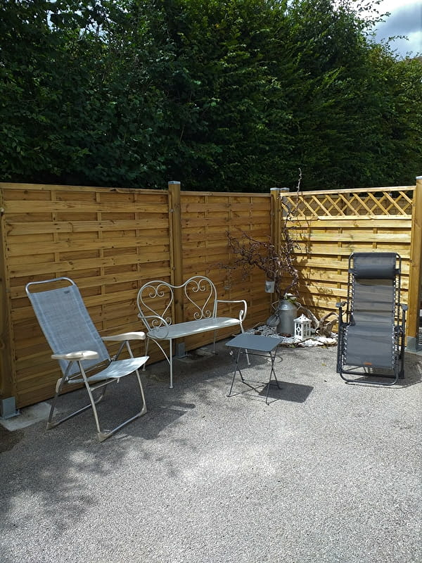 Côté extérieur, vous pourrez profiter d'une terrasse aménagée avec salon de jardin et chaises longues.