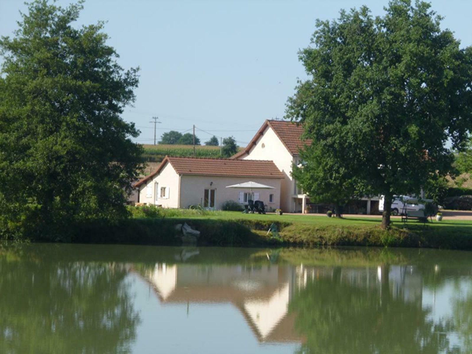 Pêcheur passionné & avisé, Bernard vous accueille au sein d'authentiques écuries datant de la fin XIXe (jadis liée à une ferme familiale traditionnelle), intégralement restaurées en "maisonnette contemporaine", jouxtant une petite pâture accueillant de paisibles moutons en saisons (selon les années), sise au calme sur un exceptionnel domaine clos de 3.5 ha chargé d'histoire (ancienne pisciculture) composé de 5 vastes étangs de pêche en "no kill" (gardons, carpes, perches, tanches...) & d'une très rare grande pièce d'eau dédiée à la "baignade naturelle" (nichée au pied du gîte). Site 100% insolite & littéralement dépaysant. Totale tranquillité & apaisant cadre préservé, en pleine campagne creusotine, au cœur d'un petit hameau rural résidentiel blotti sur les rives du célèbre Canal du Centre, en lisière de prairies, à deux pas de plusieurs espaces forestiers sauvages, non loin du centre de Ciry-le-Noble, pittoresque bourg typique lové au creux de l'ancienne "Vallée de la Céramique" (abritant deux anciennes briqueteries dont une transformée en musée). Gîte de bon confort. Chaleureux cachet campagnard "contemporain". Large terrasse "sur cour" ouverte sur la propriété. Agréable spacieux jardin en commun, engazonné, végétalisé & arboré, comprenant un verger fruitier (mirabellier, poirier, noisetiers, noyer etc… / cueillette possible avec l'accord des propriétaires). Accès à l'intégralité de la propriété.