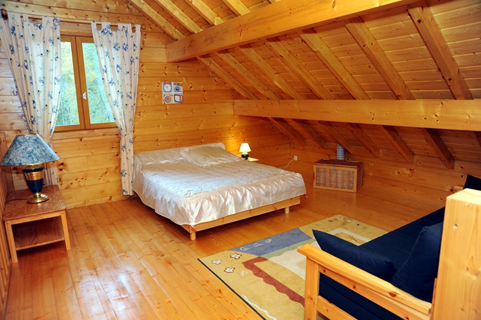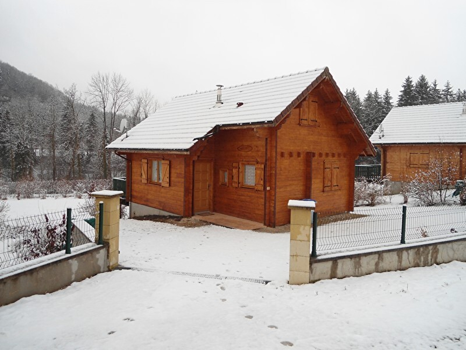 Situé en bordure de la route menant à Clairvaux-les-Lacs, dans un village situé à toute proximité des plages du domaine de Chalain (lac naturel aménagé) avec base de loisirs, tous les commerces de proximité sur place. Dans un ensemble de chalets (4 chalets identiques sur la même parcelle): un chalet "Les Gentianes" comprenant en rez-de-chaussée: pièce de jour et détente avec coin cuisine aménagé à l'américaine, salon avec canapé tv et telephone, salle d'eau, wc, une chambre avec 1 lit 2 pl. A l'étage: mezzanine avec 1 lit 2 pl et 1 chambre avec 2 lits 1 pl. Parking privé, terrasse privative (exposée sud) avec salon de jardin et barbecue. Local à vélos privé et fermé.