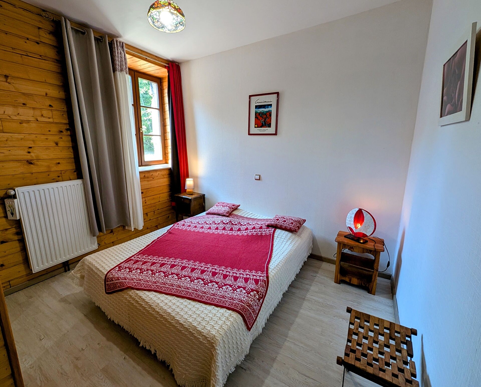 Le second gîte [ H70G002849 ], aménagé dans une ancienne maison forestière, offre un confort soigné pour 6 à 8 personnes. Il comprend une cuisine équipée, deux salles d’eau/WC, un espace salon en mezzanine avec couchages d’appoint (1 banquette lit 1 pers 90/190 et lit tiroir 90/190), deux chambres confortables (1 chambre (1 lit 160/190), 1 chambre (2 lits 140/190) ), ainsi qu’un jardin avec terrasse et verger. Le chauffage central au bois et les draps sont inclus.