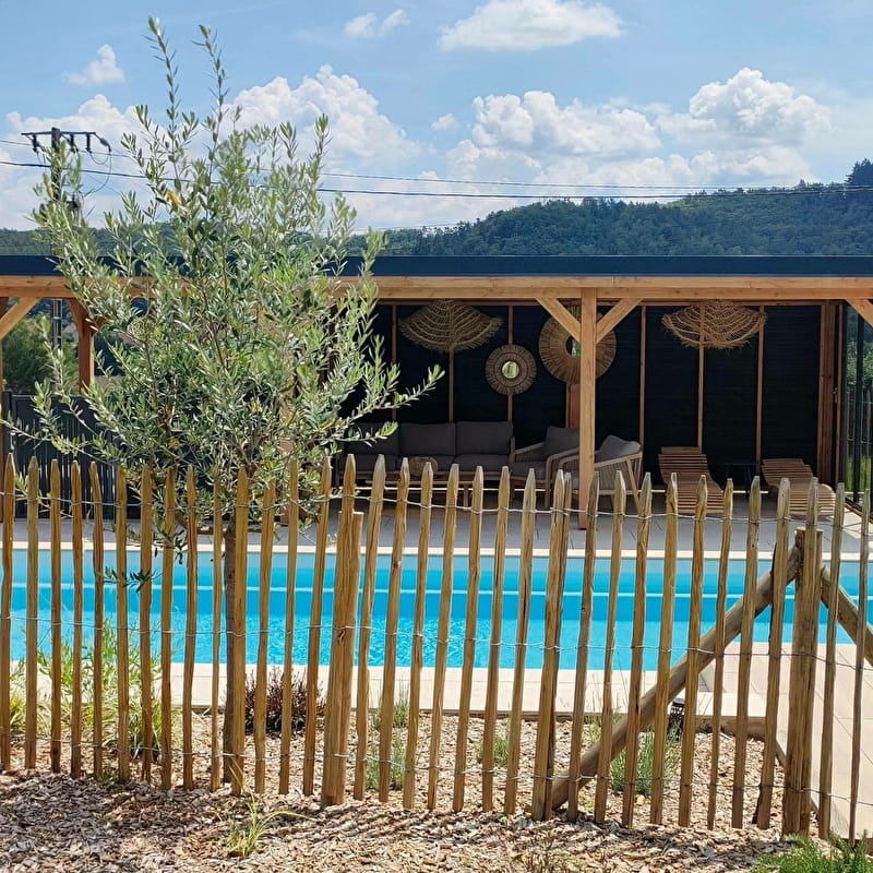 Piscine creusée de 10m par 4m sécurisée (chauffée de mi avril à fin septembre, suivant la météo) avec sa pergola de 9m par 3m, coin détente et coin bar, terrain de pétanque et table de ping-pong, aire de jeux pour les enfants.