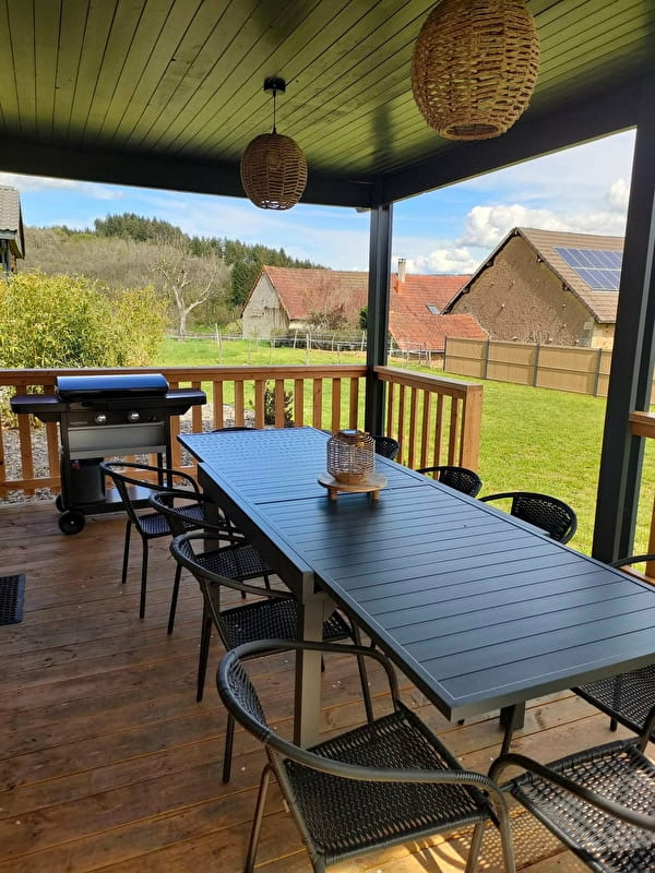 - Une grande terrasse avec un salon de jardin et un barbecue à gaz