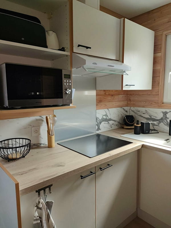 - Une cuisine ouverte sur le salon et entièrement équipée
