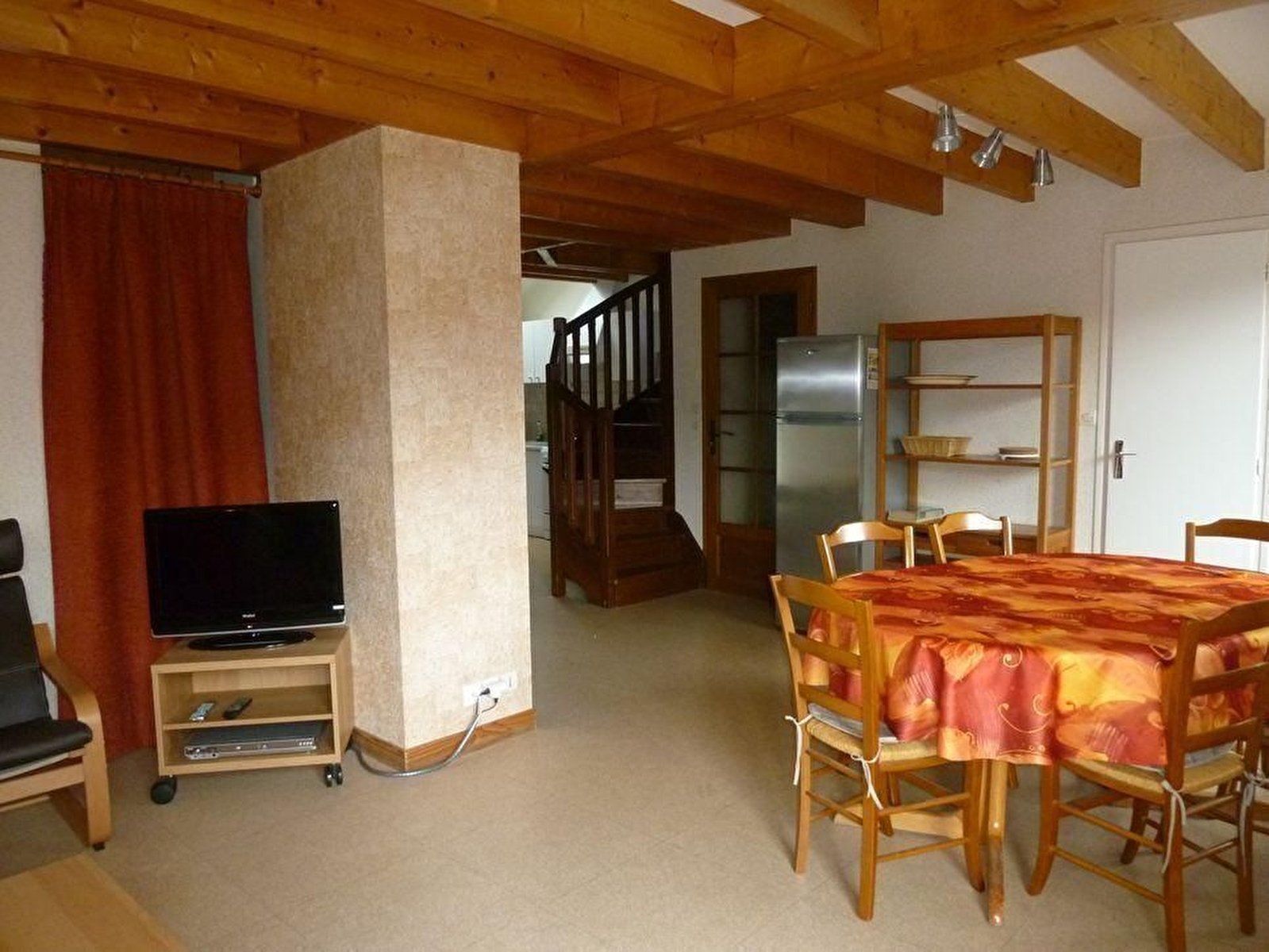 Gîte aménagé au 1er et 2ème étages d'une belle maison en pierre indépendante et comportant 2 autres appartements loués à l'année. 1er étage : Cuisine ouverte sur séjour-salle à manger (convertible 2 personnes.) donnant sur un grand balcon. Salle d'eau avec wc. 1 chambre (1 lit 140), salle de bains et wc attenants. 2ème étage : une grande chambre (3 lits 90), salle de bains et wc. Lit parapluie. Vaste jardin non clos arboré de 700 m². Animaux admis sur demande et avec dépôt de garantie supplémentaire. Supermarché et station service à 200 m.