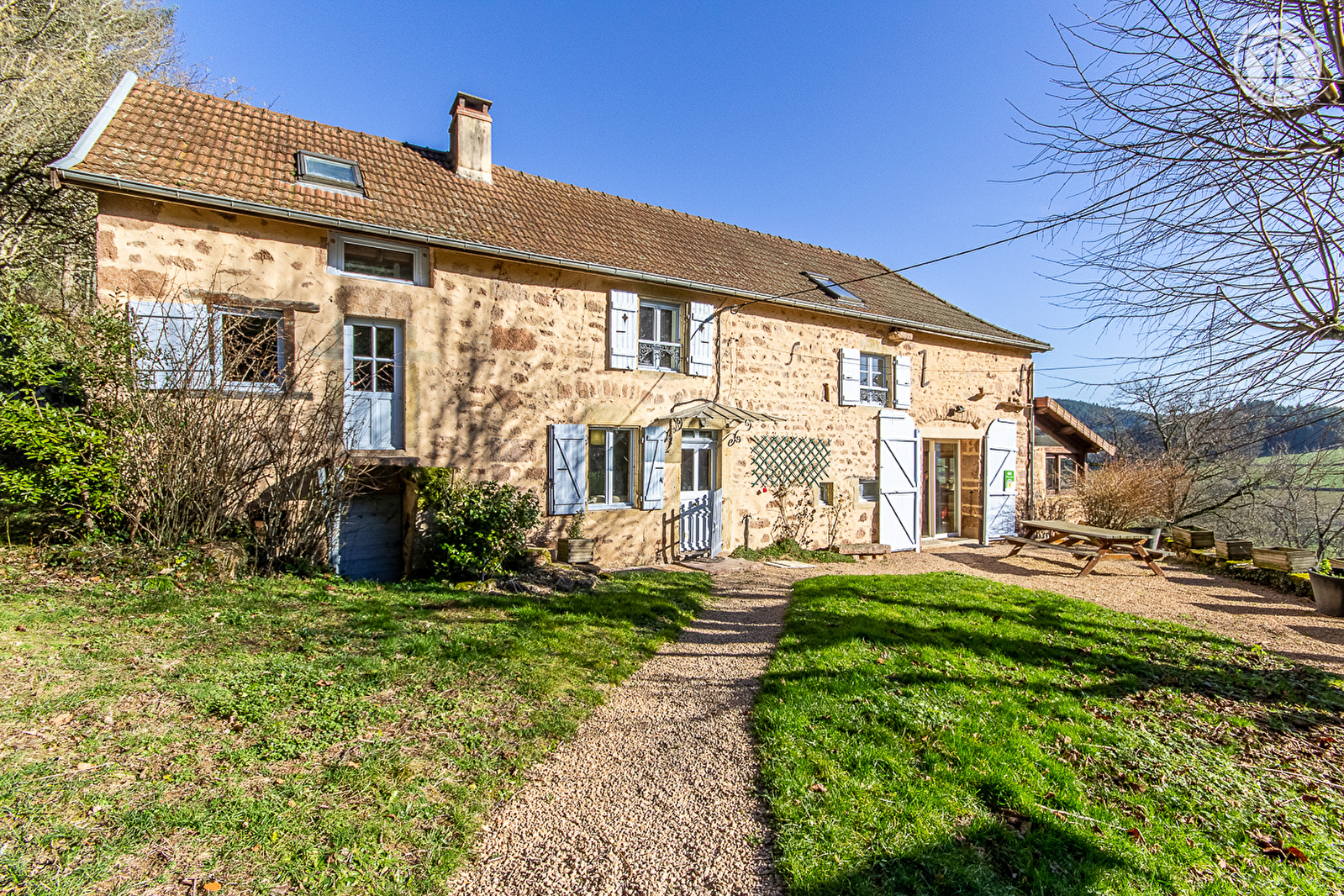 Élégant gîte de charme niché dans une authentique ferme traditionnelle de caractère de 1864, intégralement restaurée dans les règles de l'art, adossée à une colline à flanc de coteau sud-est exposé, dominant un ravissant vallon champêtre. Petit hameau blotti en pleine campagne à l'orée d'un bois, au cœur du superbe bocage brionnais, avec pour voisines privilégiées les célèbres charolaises paissant paisiblement & la faune sauvage. Calme & repos absolu en lisière de prairies et forêt, au creux d'un magnifique écrin préservé de nature & verdure, jouxtant le charmant village typique de Châtenay. Cadre & site enchanteur, de toute beauté. Vaste propriété naturelle de 1 ha (avec petite forêt & chemin de randonnée privés) comprenant une large terrasse panoramique en gravier exposée et ombragée, un agréable jardinet aménagé & fleuri et un petit terrain clos (idéal pour les animaux !). Splendide panorama et paysages. Gîte de très bon confort. Ultra spacieux. Chaleureux cachet campagnard aménagé dans l'esprit d'une maison de famille alliant l'ambiance douce & dépaysante d'une demeure chargée d'histoire et restauration patrimoniale soignée (murs en pierres, linteaux en bois, poutres … d'origine). Énormément de charme & de caractère. Cosy & cocooning. Équipement complet de qualité.