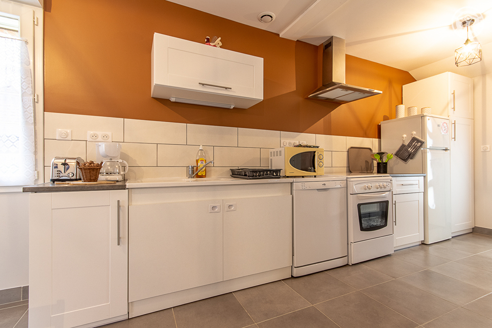 Composition : Maison individuelle de plain-pied jouxtant la maison du propriétaire (indépendance totale sans vis-à-vis). Wifi. Chauffage central fuel. Cuisine-séjour-salon (canapé convertible 2 p. 140x190cm en appoint), 2 chambres (lit 2 p. 140x190cm dans chaque), salle d'eau (douche) wc indépendant. Terrasse privée. Cour et jardin clos privatif (incluant accès au potager du propriétaire). Local vélos fermé sécurisé. Commerces et services 12 km. Gare TGV Creusot 64 km.