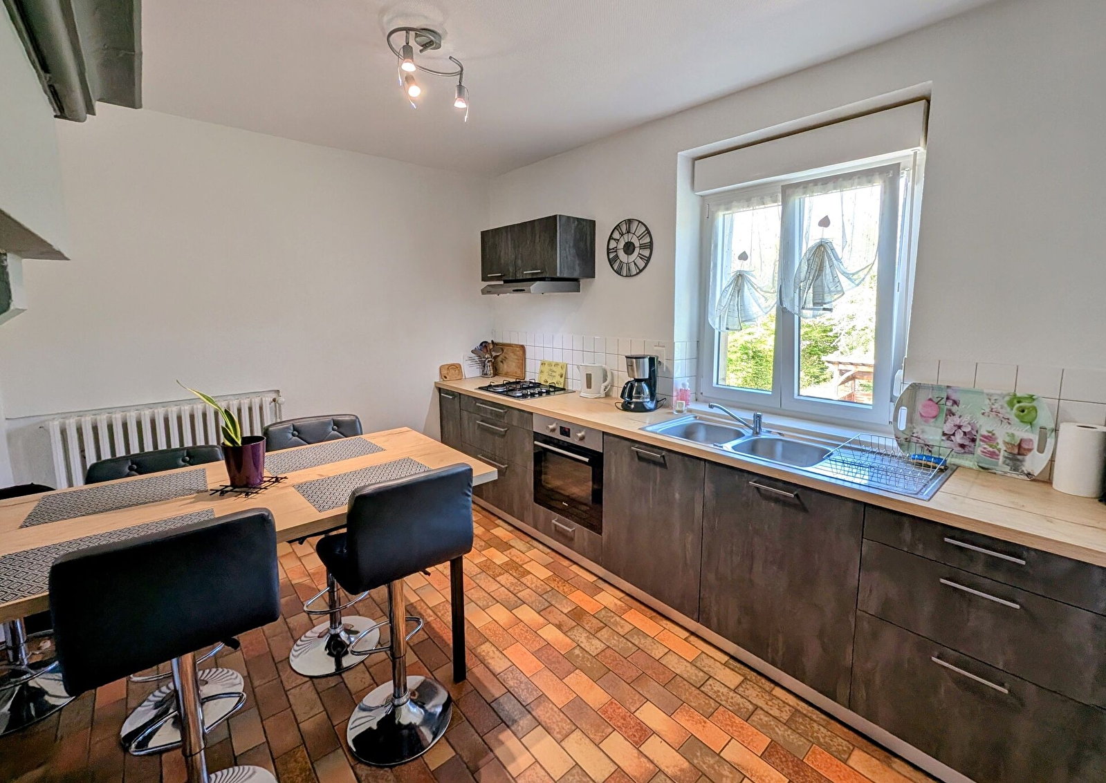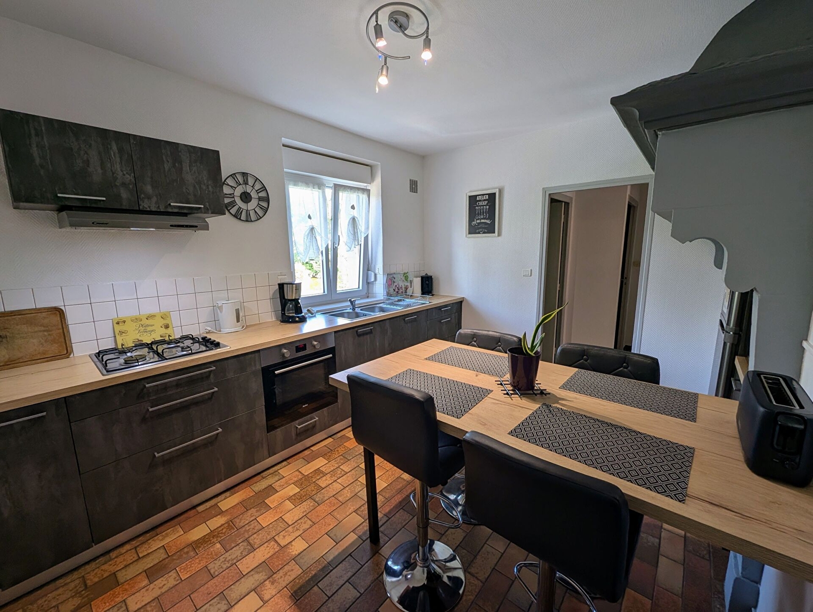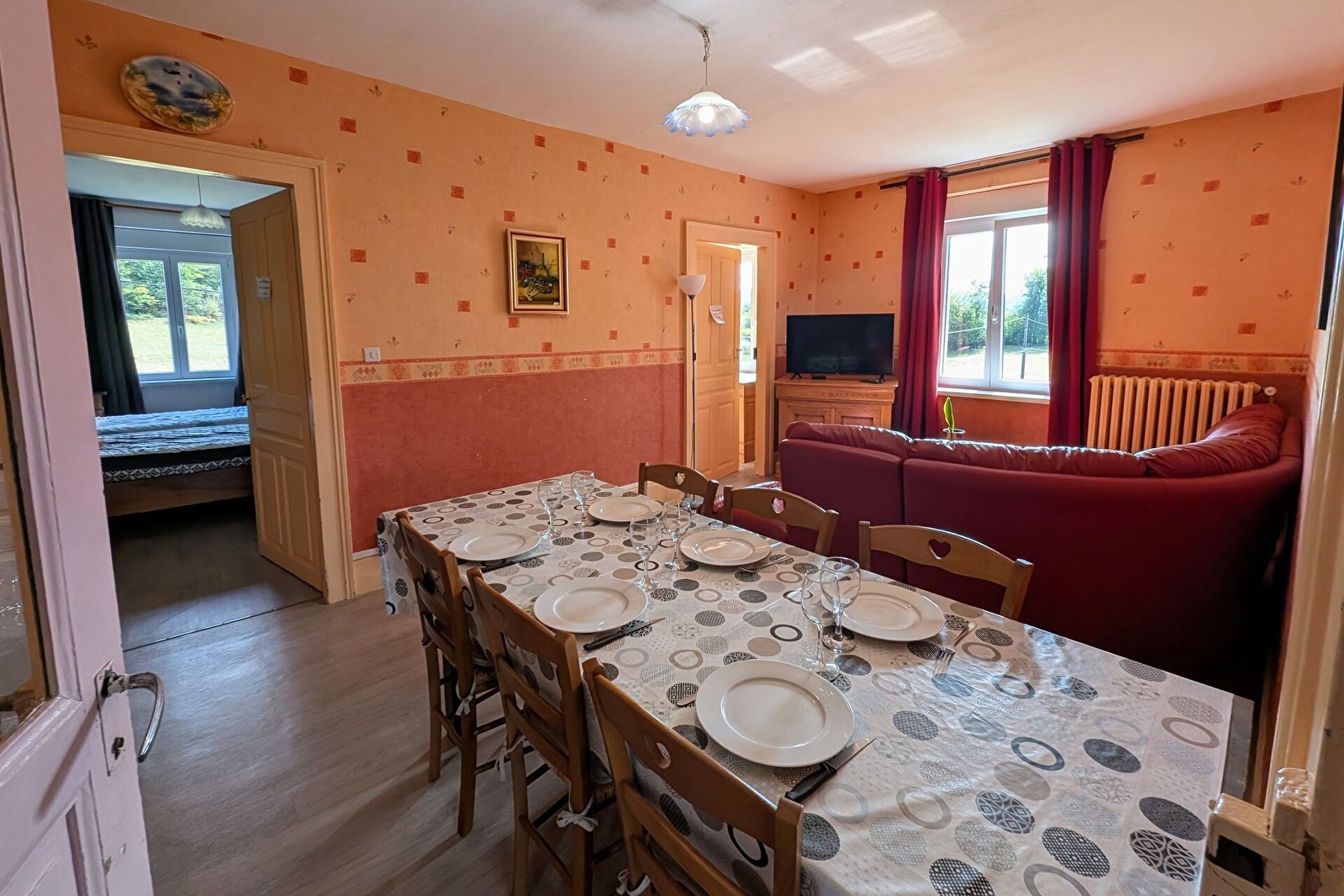 À 3 km du village, en pleine nature, appartement aménagé au 1er étage de l'ancienne école rénovée : cuisine, séjour/coin salon, 1 chambre (2 lits 1 personne), 2 chambres (1 lit 2 personnes), salle de bains, WC. À disposition : lave-linge commun avec le gite situé à l'étage. Terrain en pelouse non clos autour de la maison. Chauffage fuel. CHARGES COMPRISES. Comprend un autre gîte au rez-de-chaussée 70G4658 pour 6 pers.