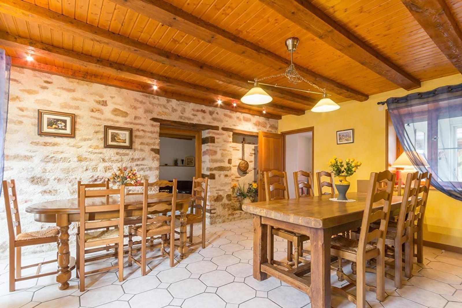 Le gîte des Granges Hautes, situé dans un quartier calme de la ville est idéal pour réunir familles et amis. Vous y trouverez la tranquillité dans un corps de ferme rénové en pierres. Rez-de-chaussée : salon, salle à manger, Wifi au sein du Gîte, cuisine équipée, 2 chambres, 1 lit 160 pour l'une et 3 lits 90 pour l'autre. 2 salles d'eau et WC. Etage : 2 chambres, à savoir, la 1ère avec 1 lit 160, la 2ème avec 3 lits en 90. Salle d'eau, WC. 2 vérandas et jardin clos de 2000 m².