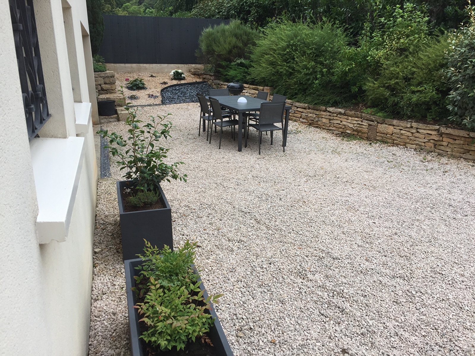 Espace extérieur dans une cours fermée avec mobilier de jardin et barbecue. Sol en gravier entouré de verdure. Parking 1 place au sein du gite. Places supplémentaires dans la rue ou parking public à 100 mètres.