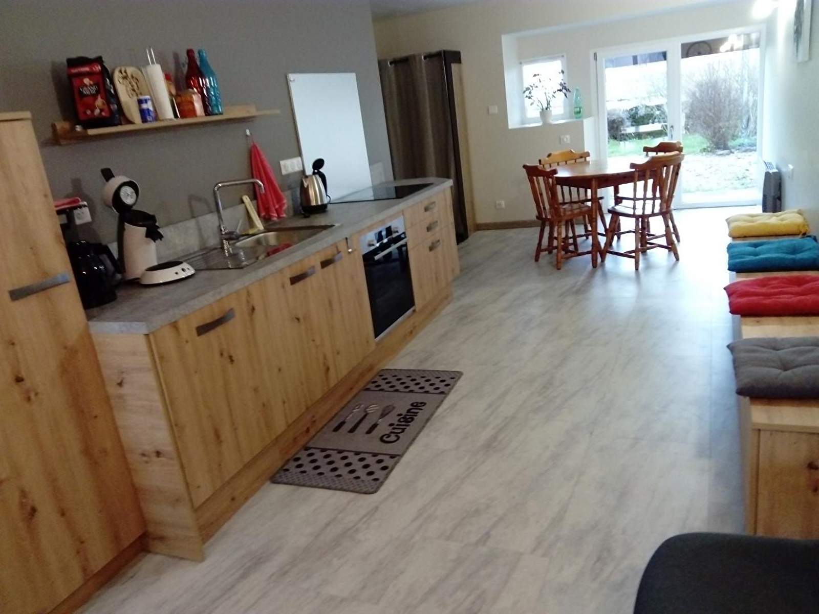 Dans un petit village situé au coeur de la région des lacs, ce gîte mitoyen à un autre gîte, entièrement neuf est composé au rez de chaussée d'une pièce de vie avec cuisine toute équipée, d'un espace salon avec TV , d'un WC indépendant. A l'étage, chambres avec chacune 1 lit 2 places, et une chambre avec 2 lis 1 place, WC indépendant, salle d'eau avec cabine de douche. Vous pourrez profiter d'une terrasse privative avec salon de jardin et barbecue, et du terrain en commun avec l'autre gîte. Idéalement situé pour découvrir le lac de Chalain, de Clairvaux,, les cascades du Hérisson, la ville thermale de Lons-le-Saunier ou partir faire des randonnées dans la campagne environnante. Les draps et le linge de toilette ne sont pas fournis.