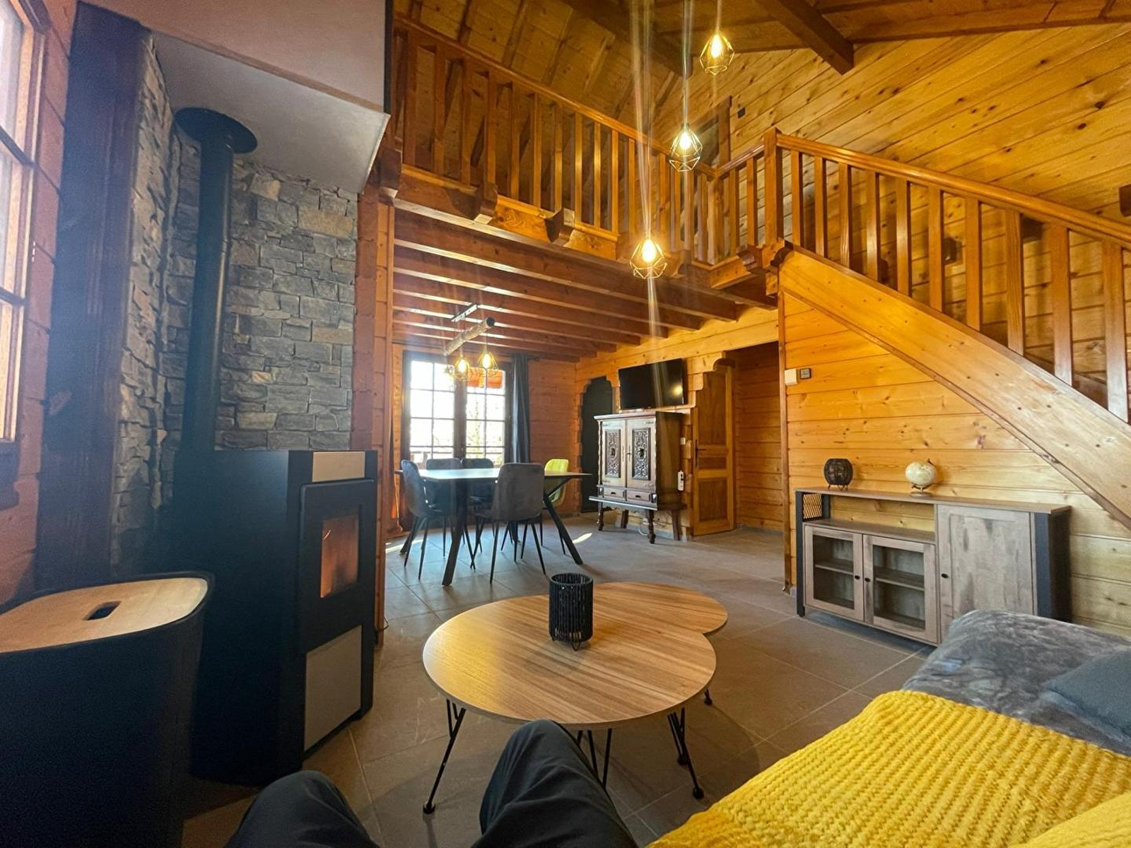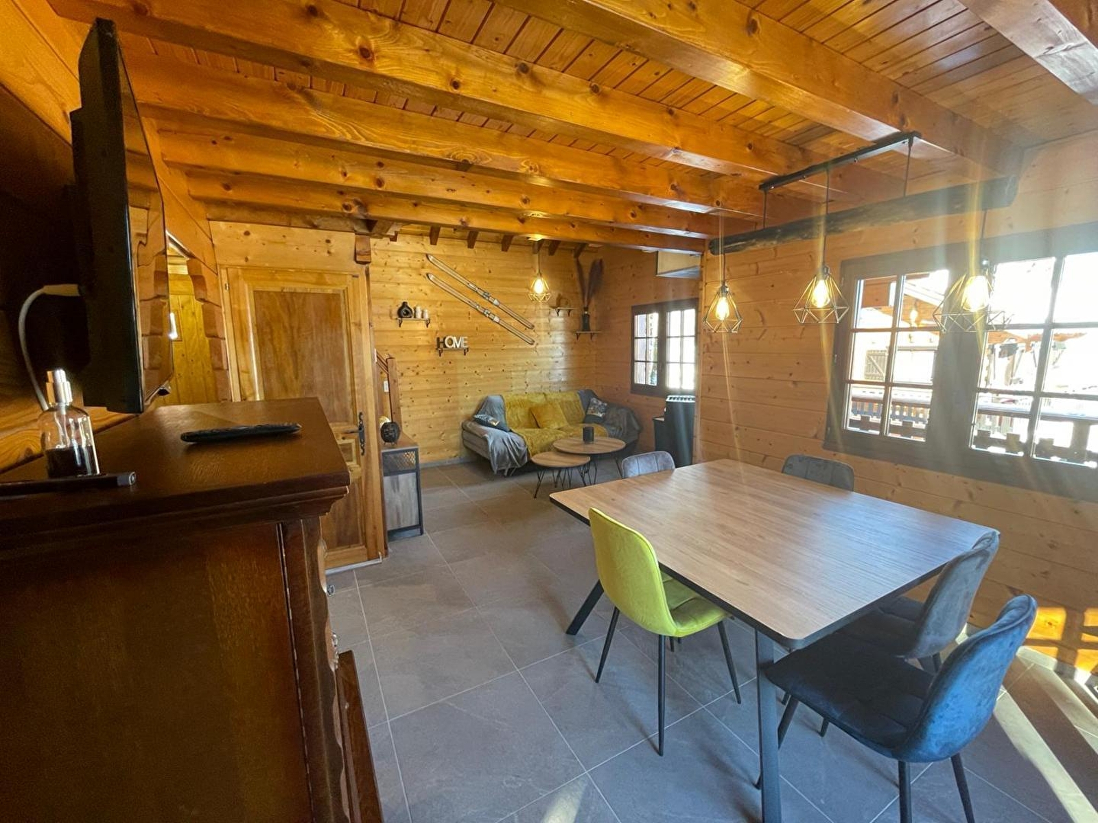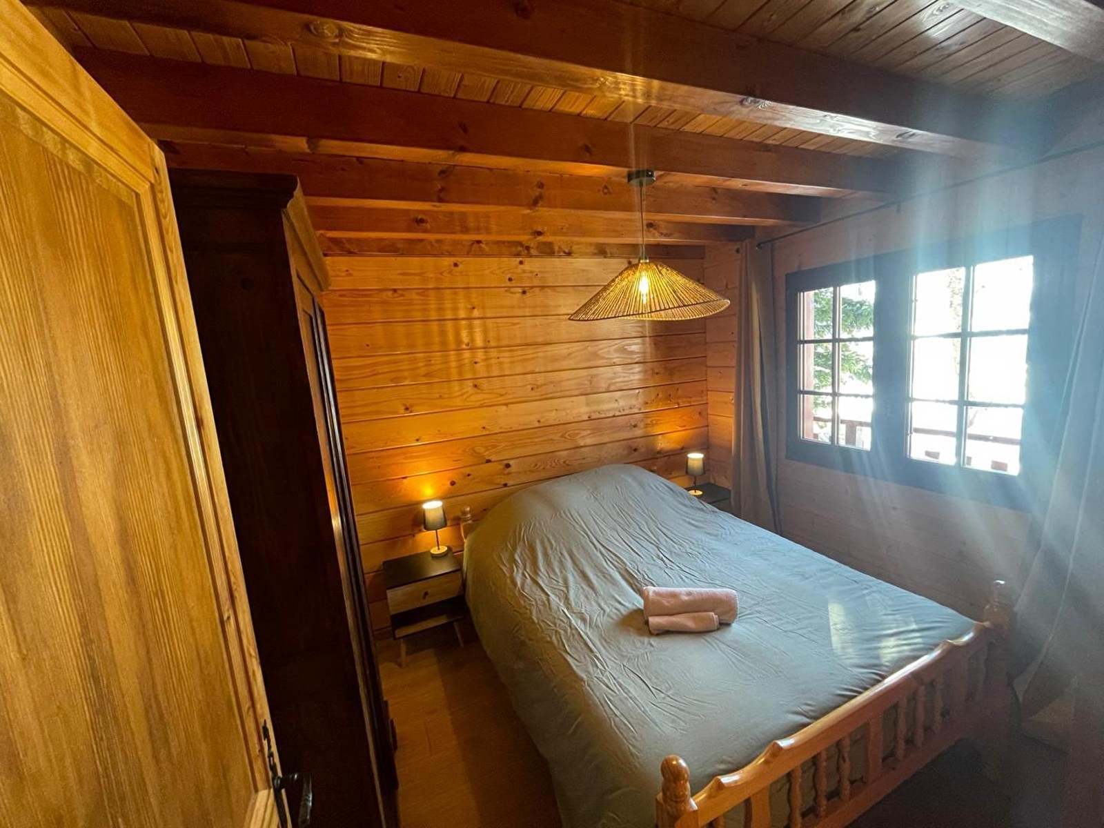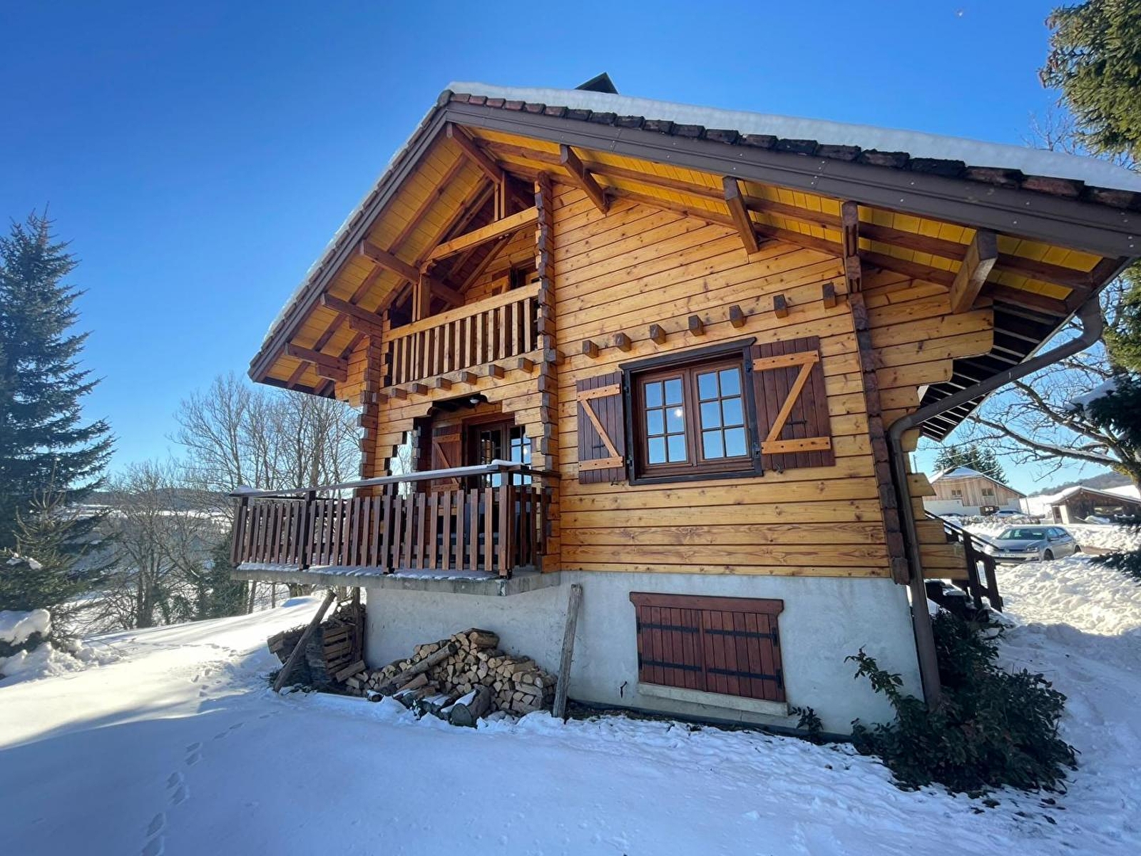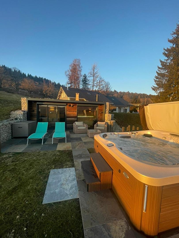Face aux pistes du domaine de Foncine-le-Haut (ski alpin et ski de fond, école de ski) et à 1km du centre du village et de ses commerces de proximité, ce chalet très lumineux se compose d'un sous-sol avec garage et buanderie. Au 1er étage, pièce de vie avec espace salon avec canapé, TV et poêle à granulés, coin salle à manger, cuisine toute équipée, chambre double (140*190), salle de bain avec baignoire et WC indépendant. A l'étage, une mezzanine avec lit gigogne (180*200) avec accès à un petit balcon, et une chambre avec 1 lit double (140*190) et 1 lit simple (90*190) et TV. Côté extérieur, vous pourrez accéder depuis la pièce de vie à un balcon aménagé avec transats, table et barbecue. Option accès à l'espace bien-être avec jacuzzi haut de gamme spécialisé dans la balnéothérapie et les massages thérapeutiques ainsi qu'un sauna au bois avec douche et salon de relaxation, tout cela avec une vue panoramique sur les montagnes. Il se situe à 400 mètres du chalet. Commun avec 2 autres gites et sur réservation (6 à 8 personnes maximum), session de 20 minutes pour 2 personnes 25€, session de 1h30 pour 2 personnes 45€. les horaires de réservation des sessions peuvent être aménagées en accord avec le propriétaire. - L’hiver : départ du chalet à pied vers les pistes du domaine skiable, sortie en raquettes,... - L’été : baignade dans les nombreux lacs de tout proche, randonnées pédestres, VTT (location à proximité du chalet), à cheval, canyoning, pêche, … De part sa situation au cœur du Parc naturel régional du Haut Jura et de la région des lacs, nombreux sentiers de randonnée balisés et diverses activités proposées (musées, caves d’affinage, balades culturelles, patinoire,…); panoramas exceptionnels sur la chaîne du Jura, des Alpes et du lac Léman,…