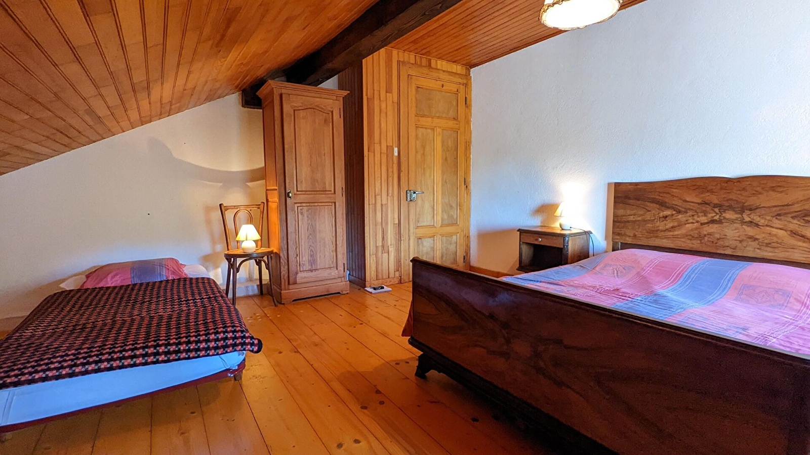 Dans la montagne, dans le parc des Ballons des Vosges, en pleine nature à 3 km du village, gite aménagé dans une maison indépendante comportant également une résidence secondaire mitoyenne par l'arrière. Au rez-de-chaussée : séjour/coin cuisine, salle à manger/coin salon avec cheminée avec insert, salle d'eau, WC. Au premier étage : 1 chambre (1 lit 2 personnes - 1 lit 1 personne), 1 chambre (1 lit 2 personnes - 1 lit de coin pour enfant). Terrain privatif en pelouse non clos. Parking privatif. Chauffage convecteurs électriques/bois. Joli village formé de plusieurs hameaux.